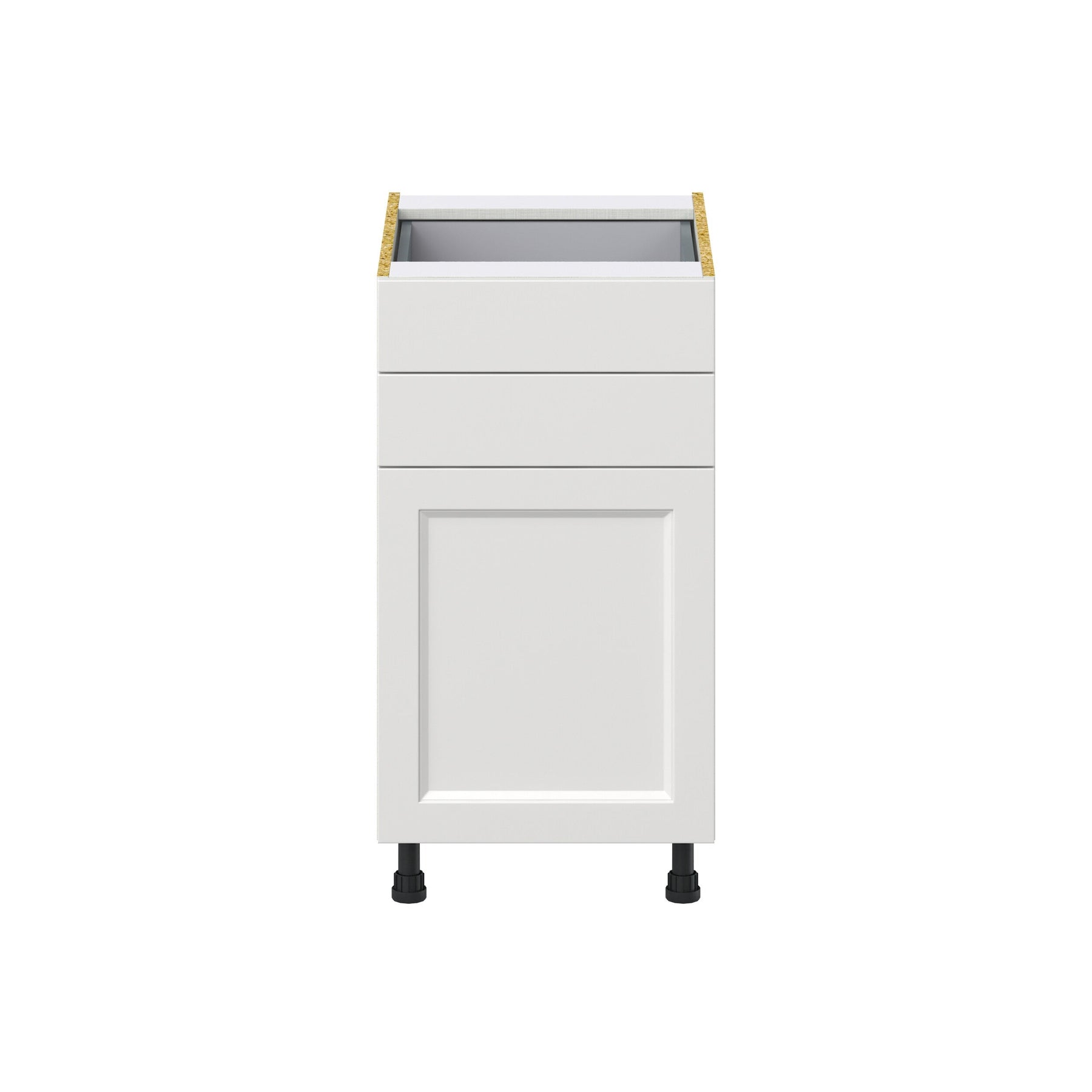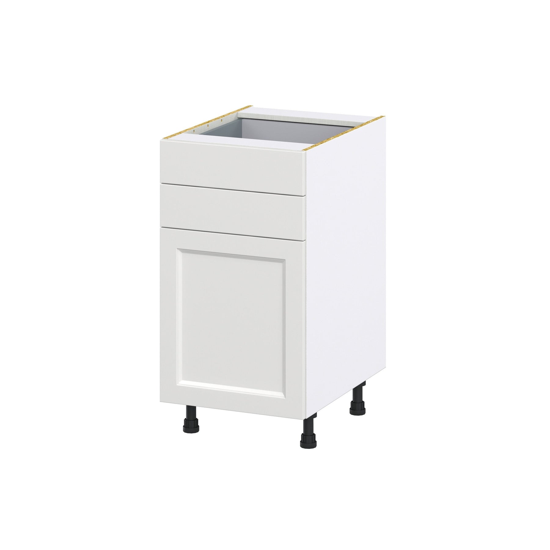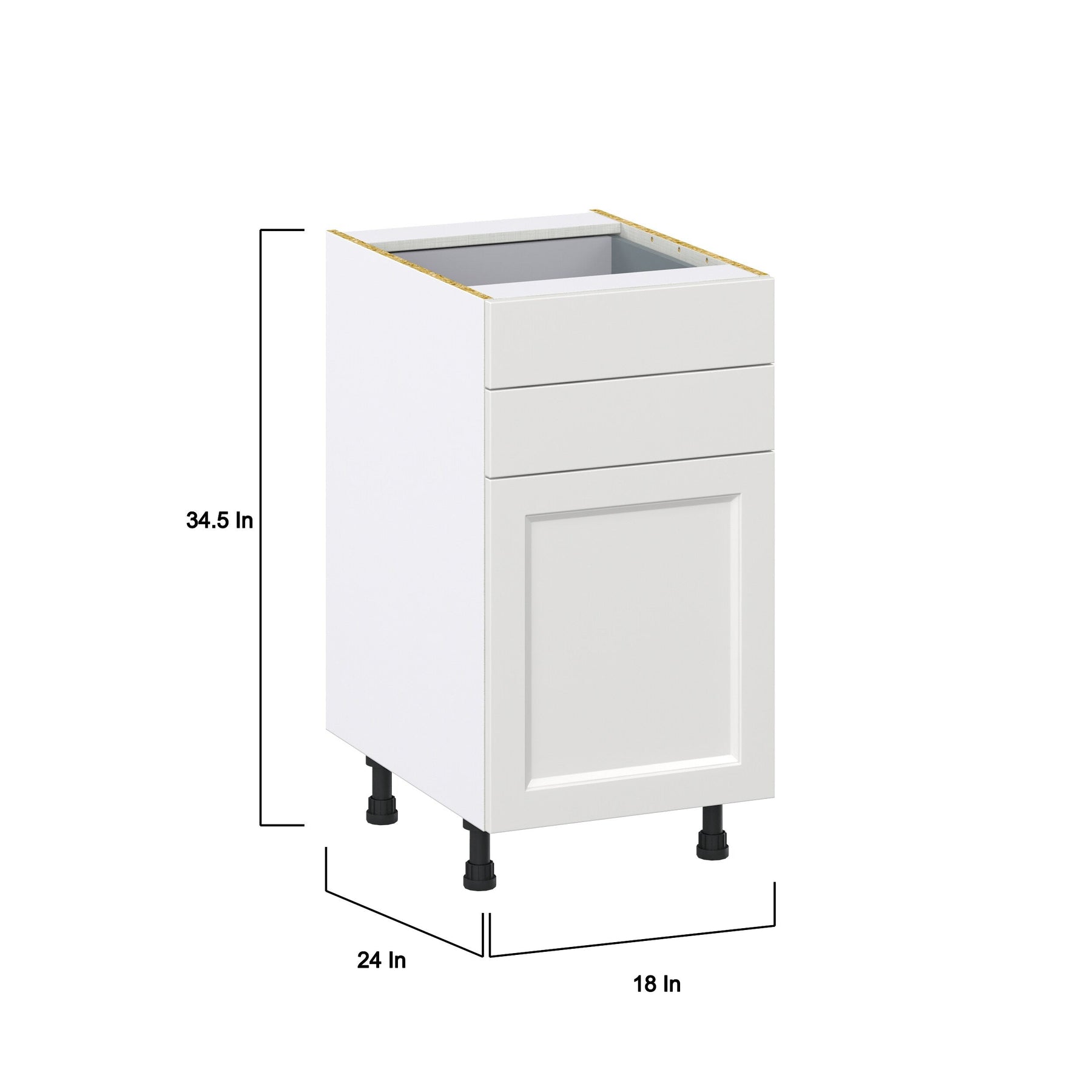 Transform storage with the Riviera 18-in Shaker Cabinet, featuring a sleek recessed panel design in a bright white matte finish. This base cabinet offers exceptional durability with premium soft-close doors and drawers and provides seamless access thanks to full-extension undermount glides.