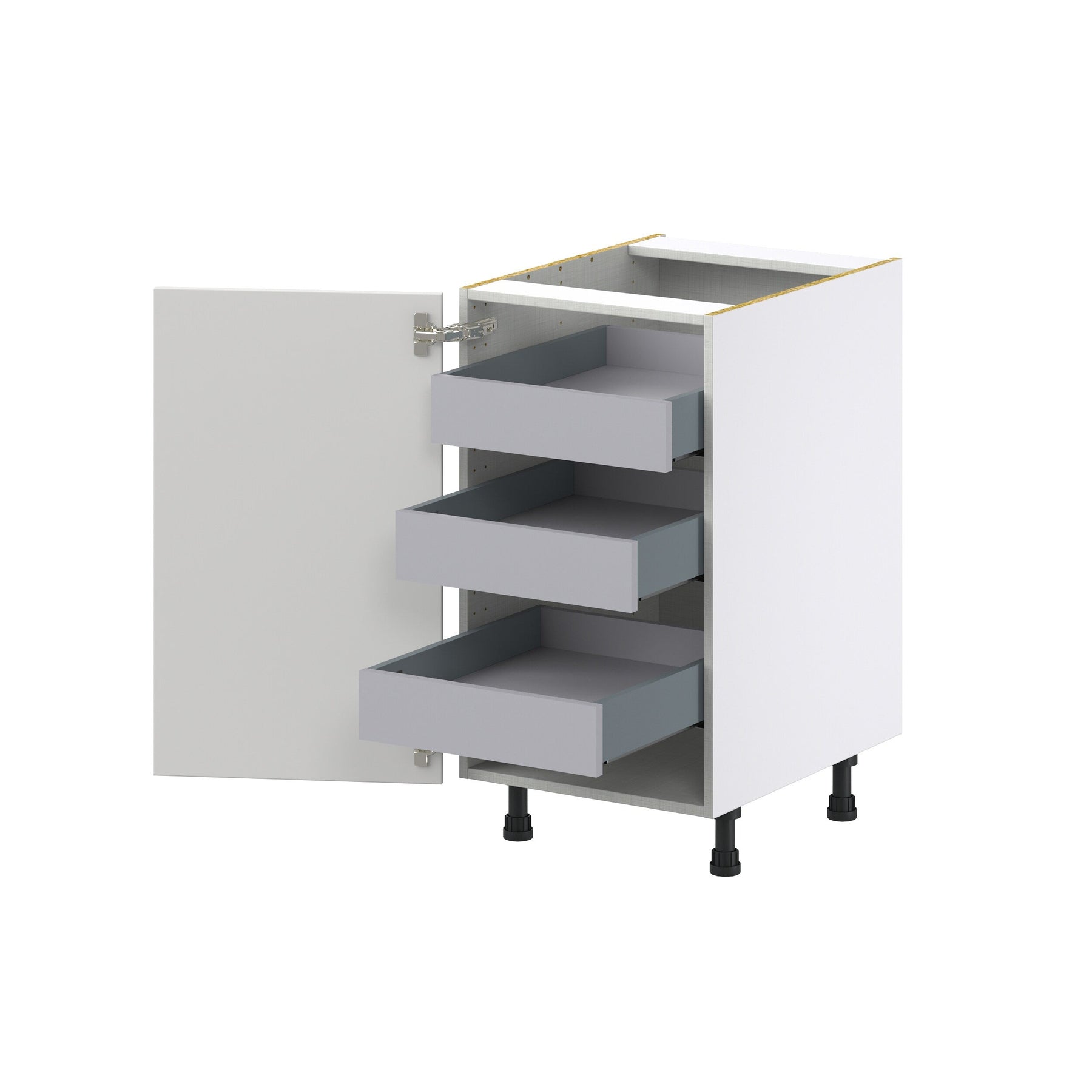 Elevate your kitchen space with the Hugo&Borg Riviera Base Cabinet, featuring a chic, bright white finish and a timeless recessed panel Shaker style. Its fully assembled form and premium soft-close doors ensure both ease of installation and long-lasting, seamless functionality.