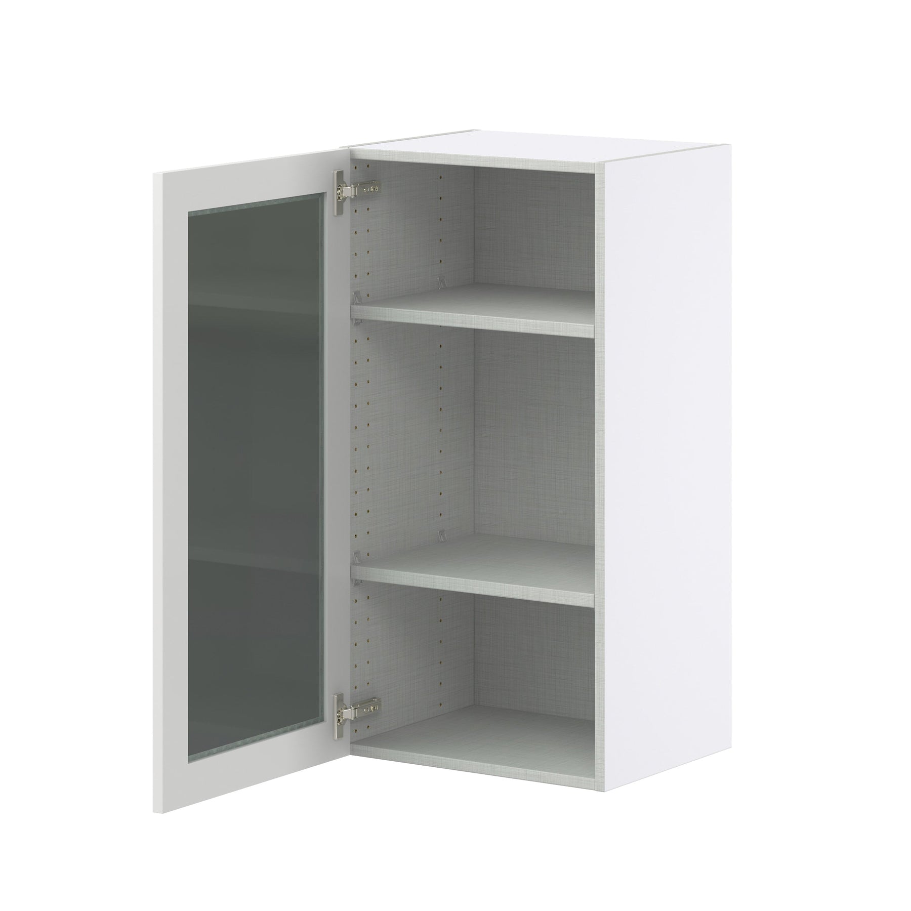 The Hugo&Borg Riviera 18-inch Wall Cabinet combines elegant design with practical functionality. The fully assembled, bright white Shaker-style cabinet features a sleek glass panel door, providing both style and storage for any modern kitchen. Its durable construction and stain-resistant finish ensure this cabinet will remain a shining centerpiece in your home.