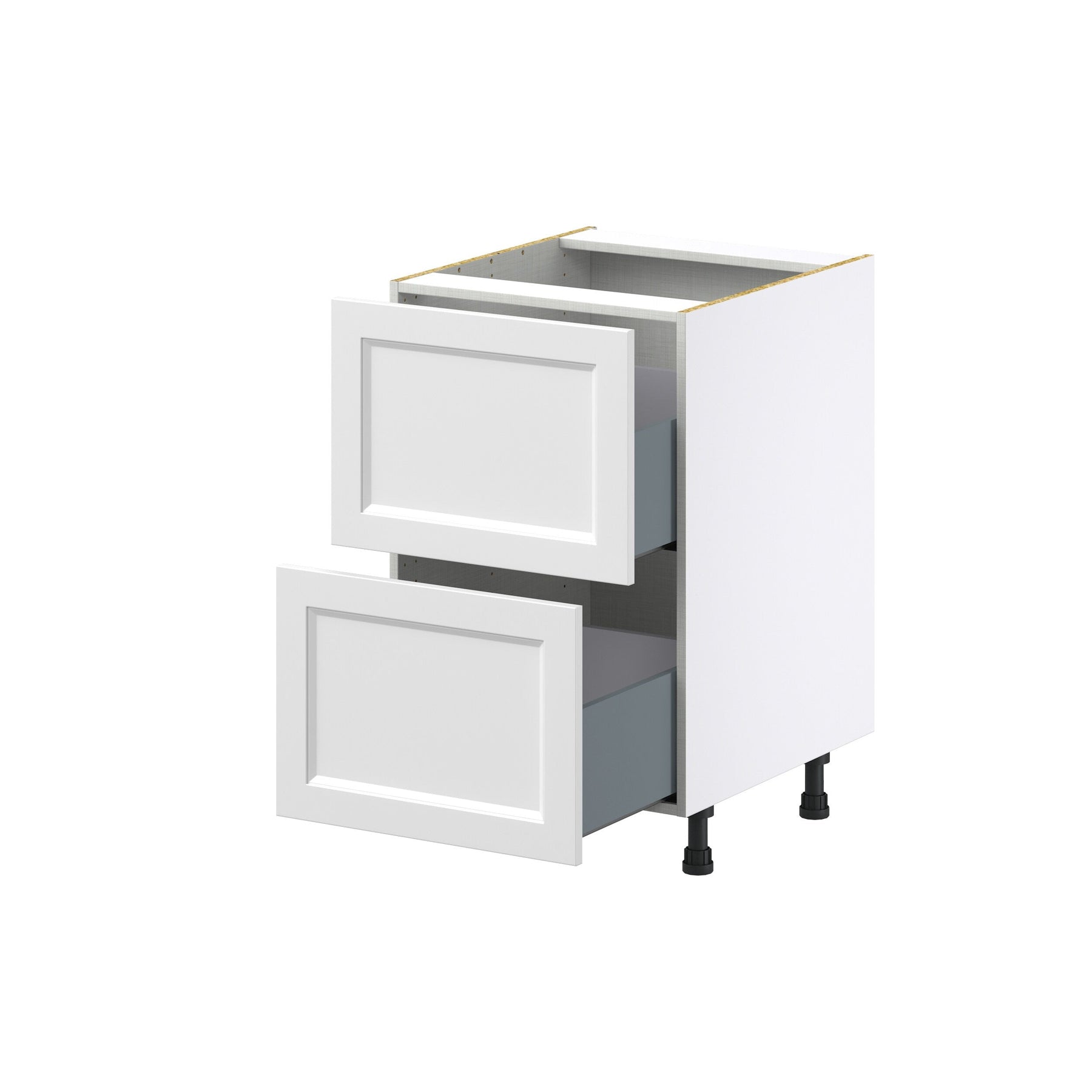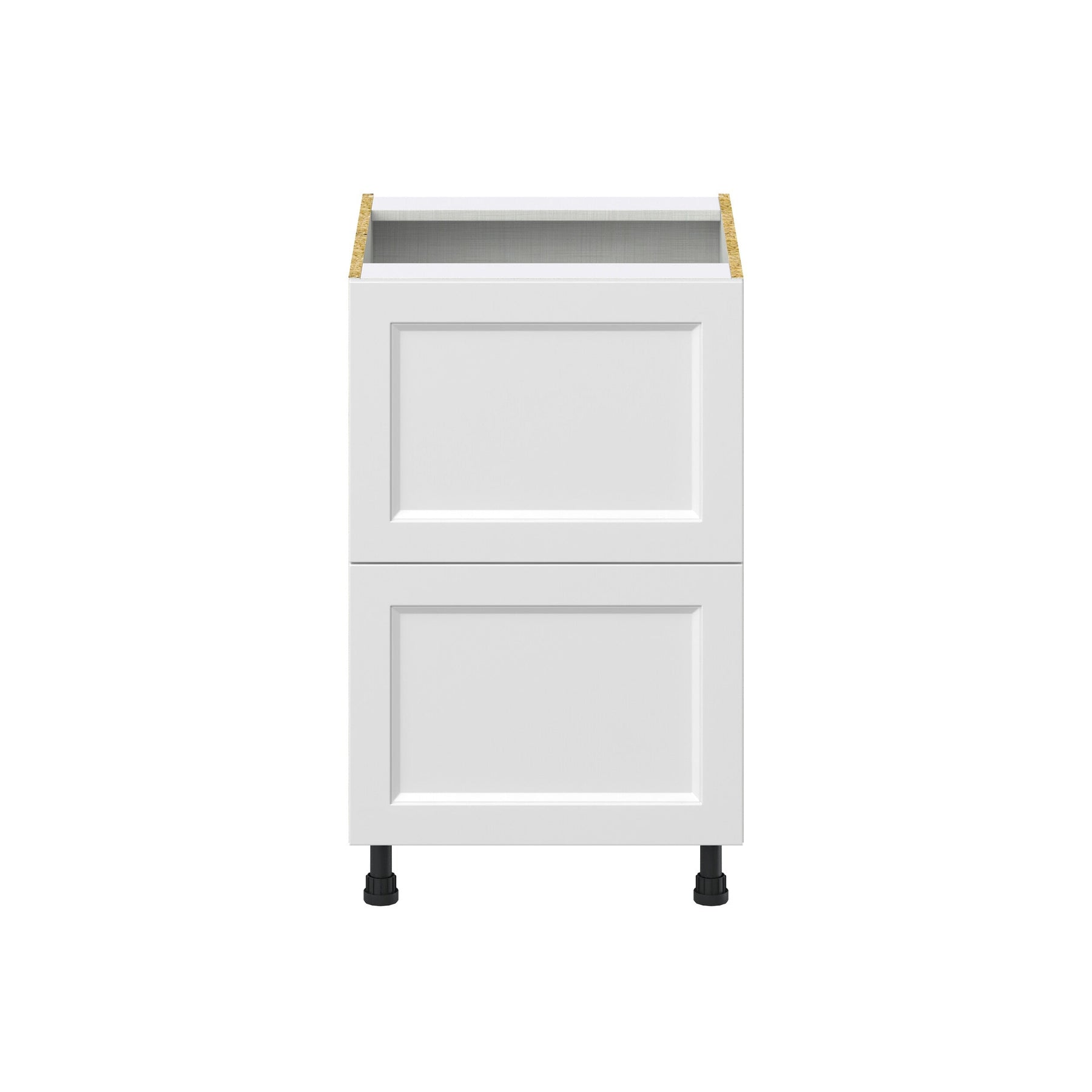 The Hugo&Borg Riviera 2-Drawer Base Cabinet brings a sleek, modern look to your kitchen with its bright white finish and recessed panel design. This fully assembled unit features soft-closing, full-extension drawers and a European-style construction that optimizes storage space. Built for durability, it also resists stains and moisture for long-lasting elegance.
