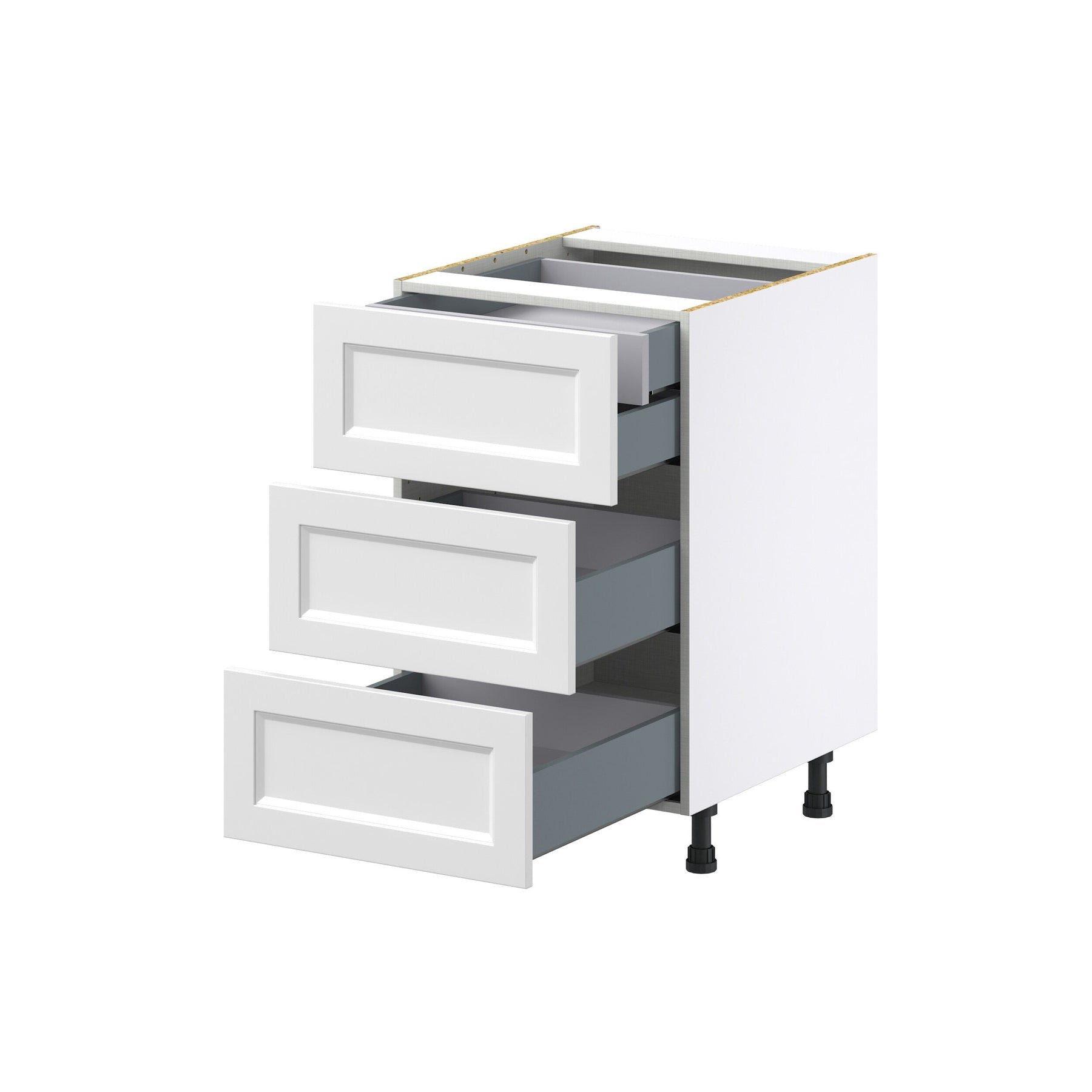 Elevate your kitchen design with the Hugo&Borg Riviera 4-Drawer Base Cabinet. This fully-assembled storage solution offers frameless European construction, delivering 20% more space and a sleek, contemporary look in bright white. The cabinet features soft-close drawers and a moisture-resistant, silky smooth finish—perfect for enduring style and function.