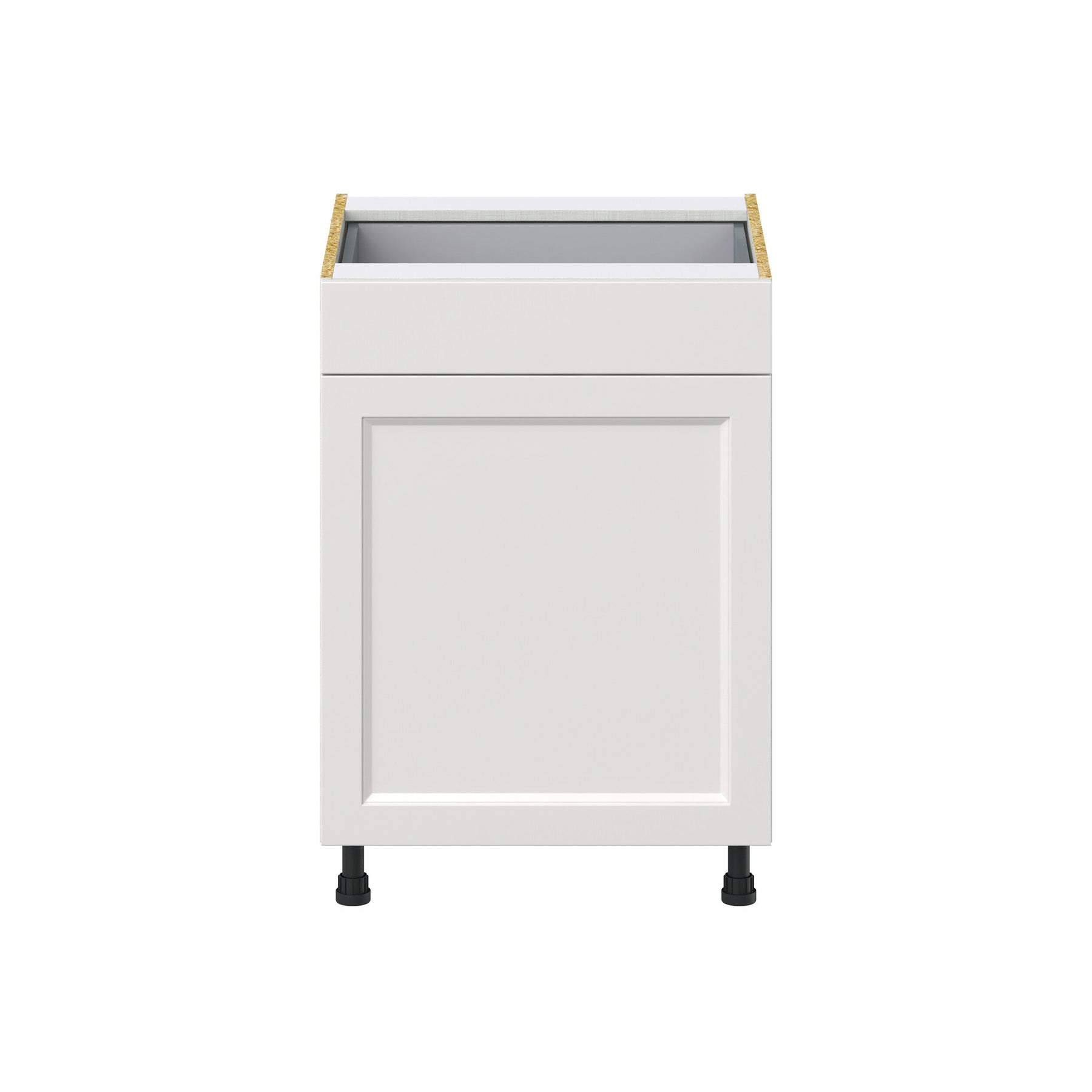 Elevate your kitchen design with the Hugo&Borg Riviera Base Cabinet. Fully assembled with a sleek recessed panel style, this cabinet features a bright white finish and a soft-close metal drawer, making it both stylish and functional for any home renovation project.