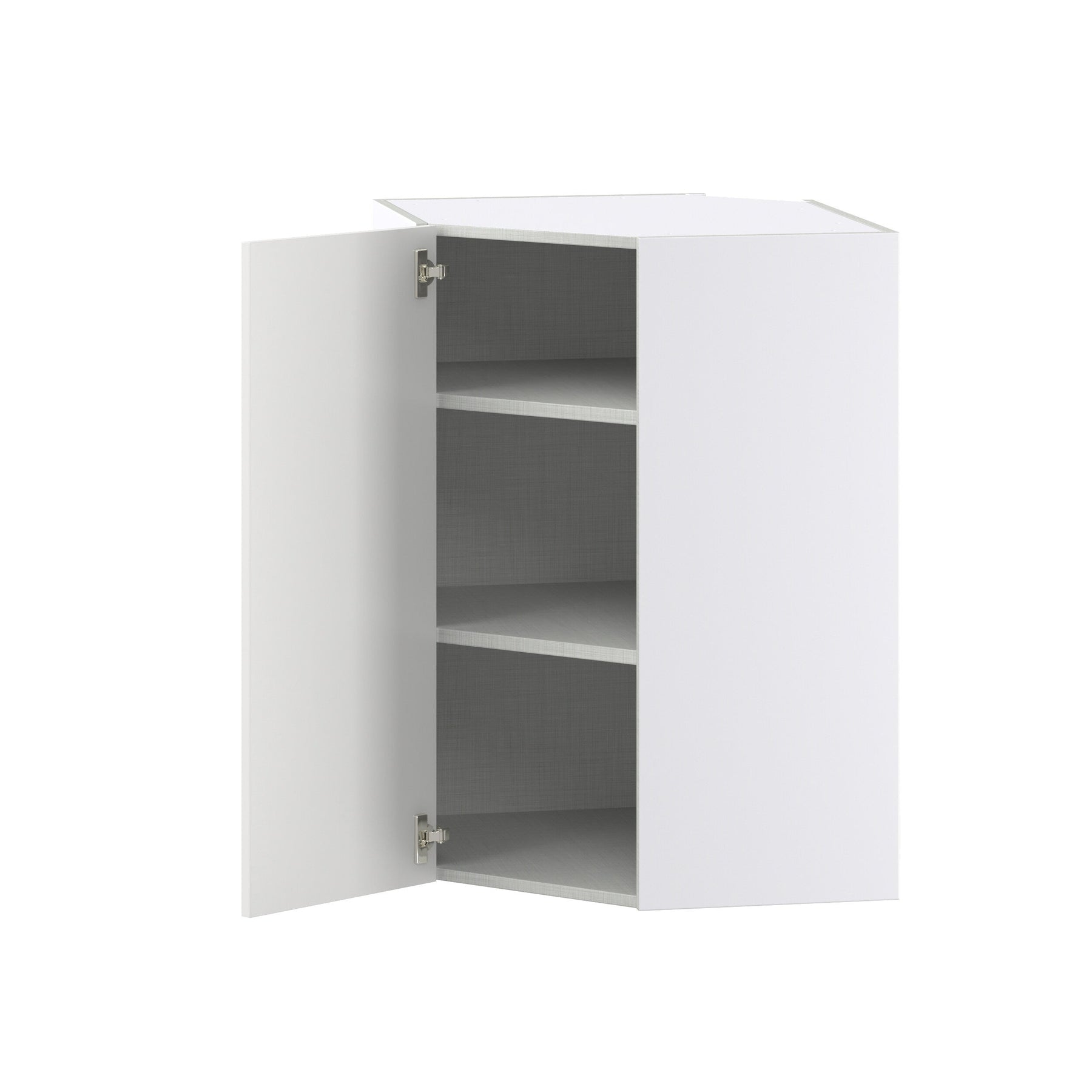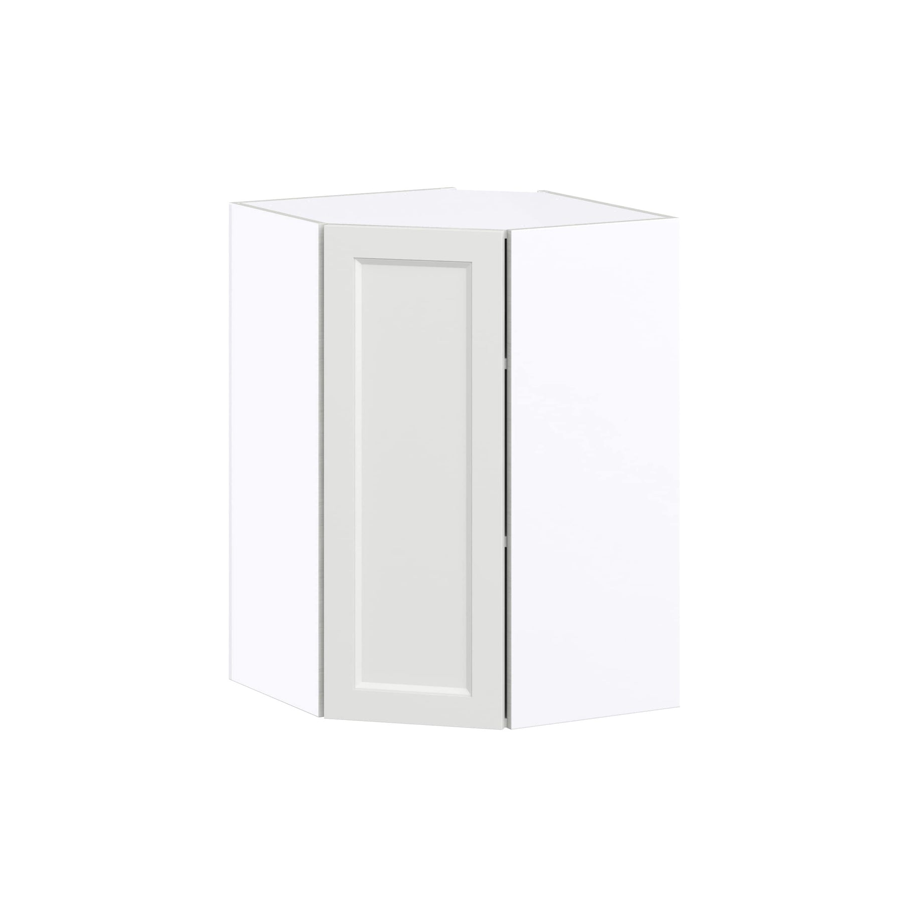 Maximize your kitchen space with the Hugo&Borg Riviera 24-in Diagonal Corner Wall Cabinet. Finished in a crisp bright white, this cabinet adds a touch of transitional elegance with its sleek shaker style. Enjoy soft-close doors, adjustable shelving, and a generous storage area thanks to its innovative full access box construction.