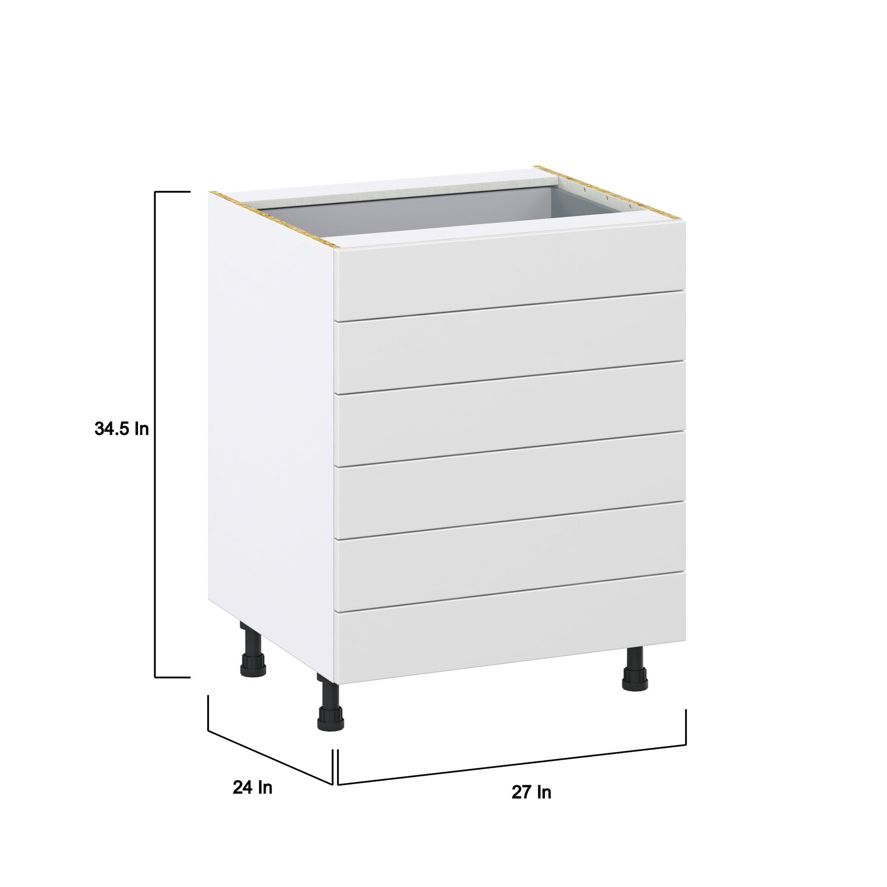 Hugo&Borg Riviera 27-in W x 34.5-in H x 24-in D Bright White 6-Drawer Base Fully Assembled Cabinet (Recessed Panel Style)