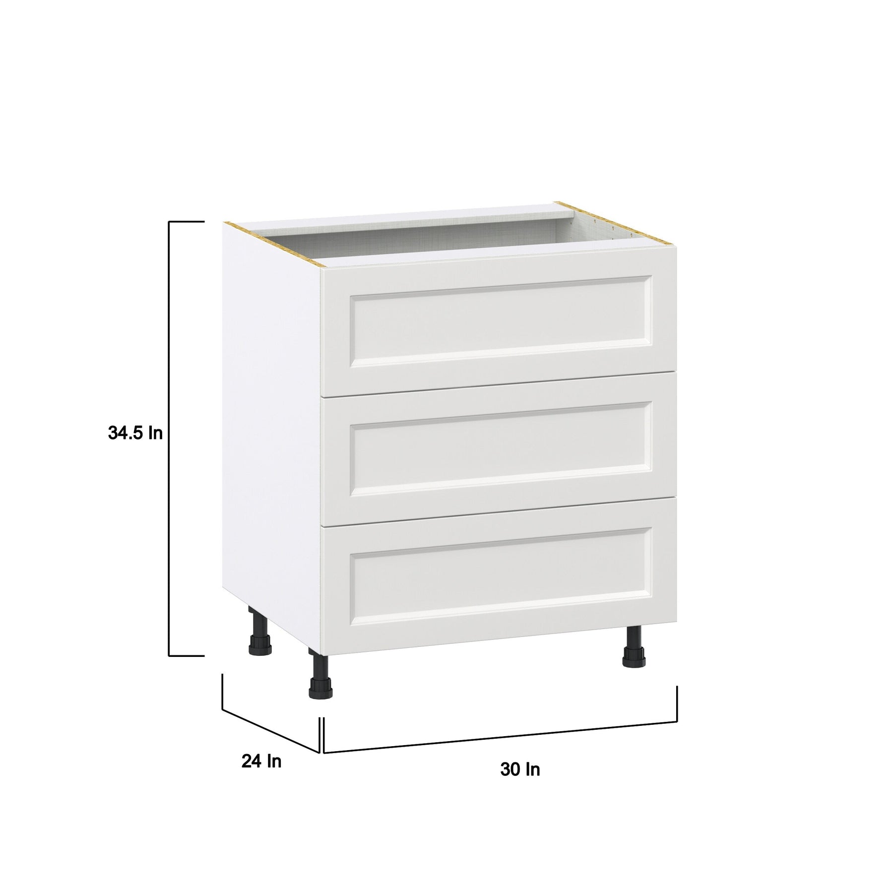 Hugo&Borg Riviera 30-in W x 34.5-in H x 24-in D Bright White 3-Drawer Base Fully Assembled Cabinet
