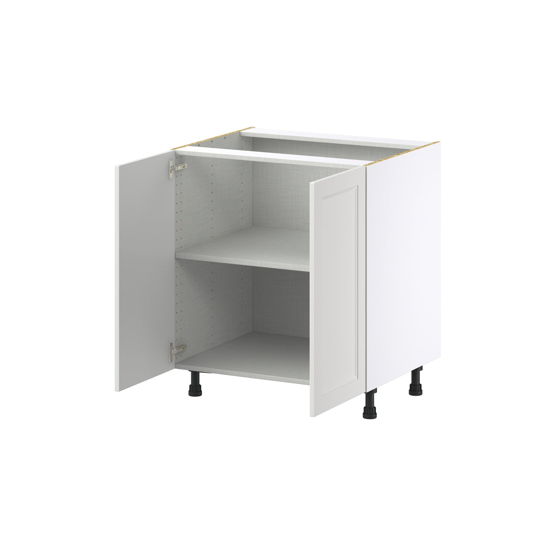 The Hugo&Borg Riviera Bright White Base Cabinet is perfect for creating a high-end kitchen with ease. With full-access box construction, this fully assembled cabinet maximizes your storage space while offering a sleek, modern aesthetic with its recessed panel Shaker door style and soft-close technology. It's the ideal foundation for both transitional and contemporary kitchen designs.