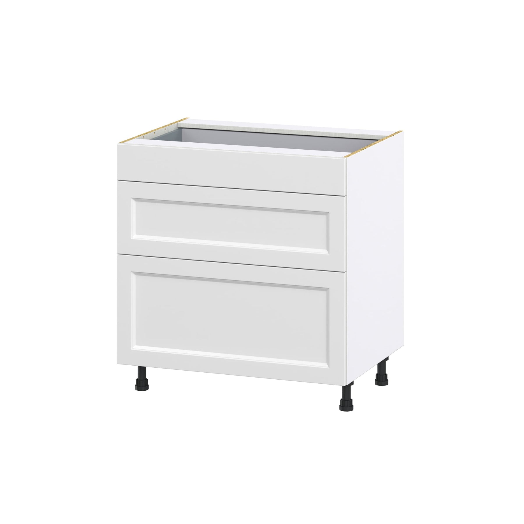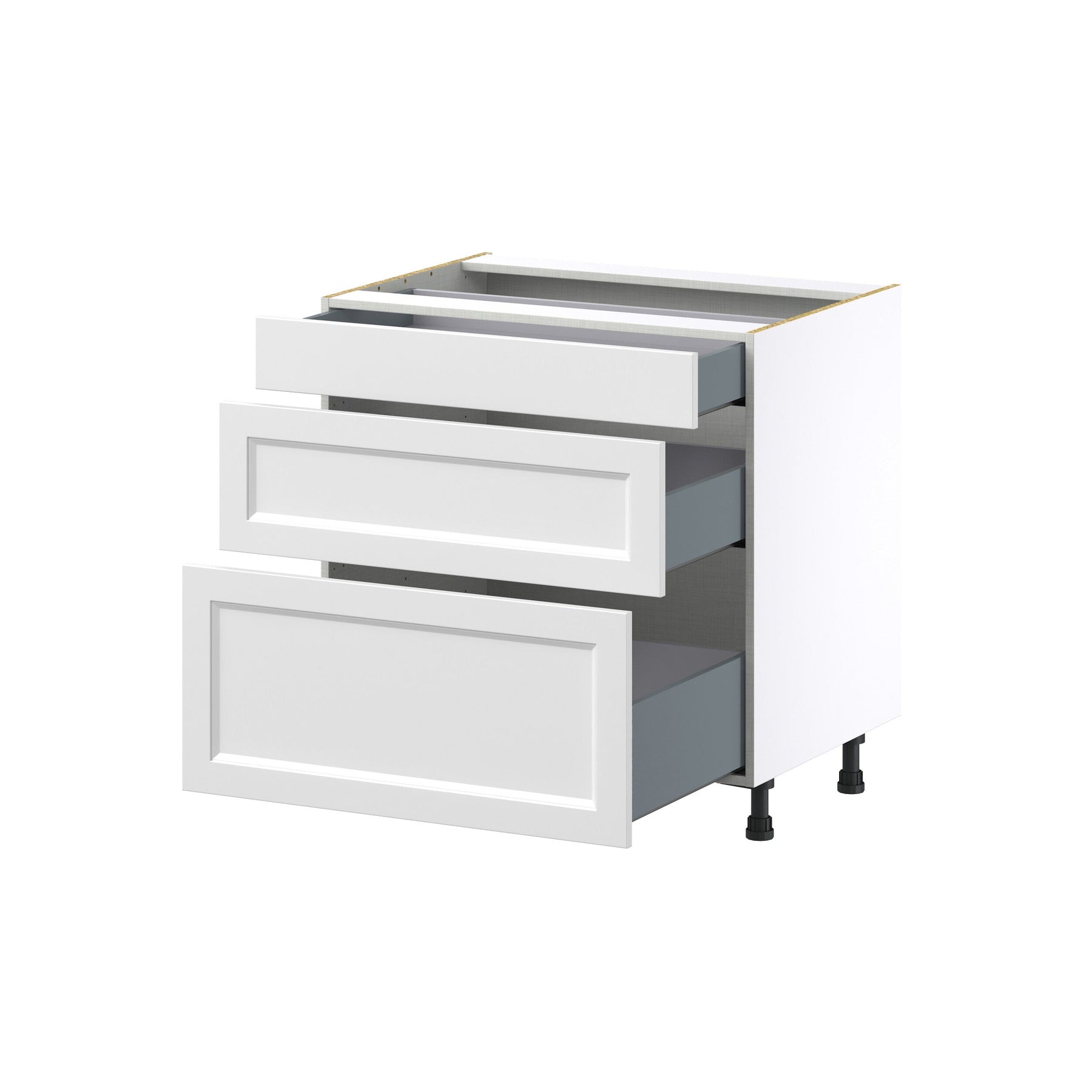 Hugo&Borg Riviera 33-in W x 34.5-in H x 24-in D Bright White 3-Drawer Base Fully Assembled Cabinet (Recessed Panel Style)
