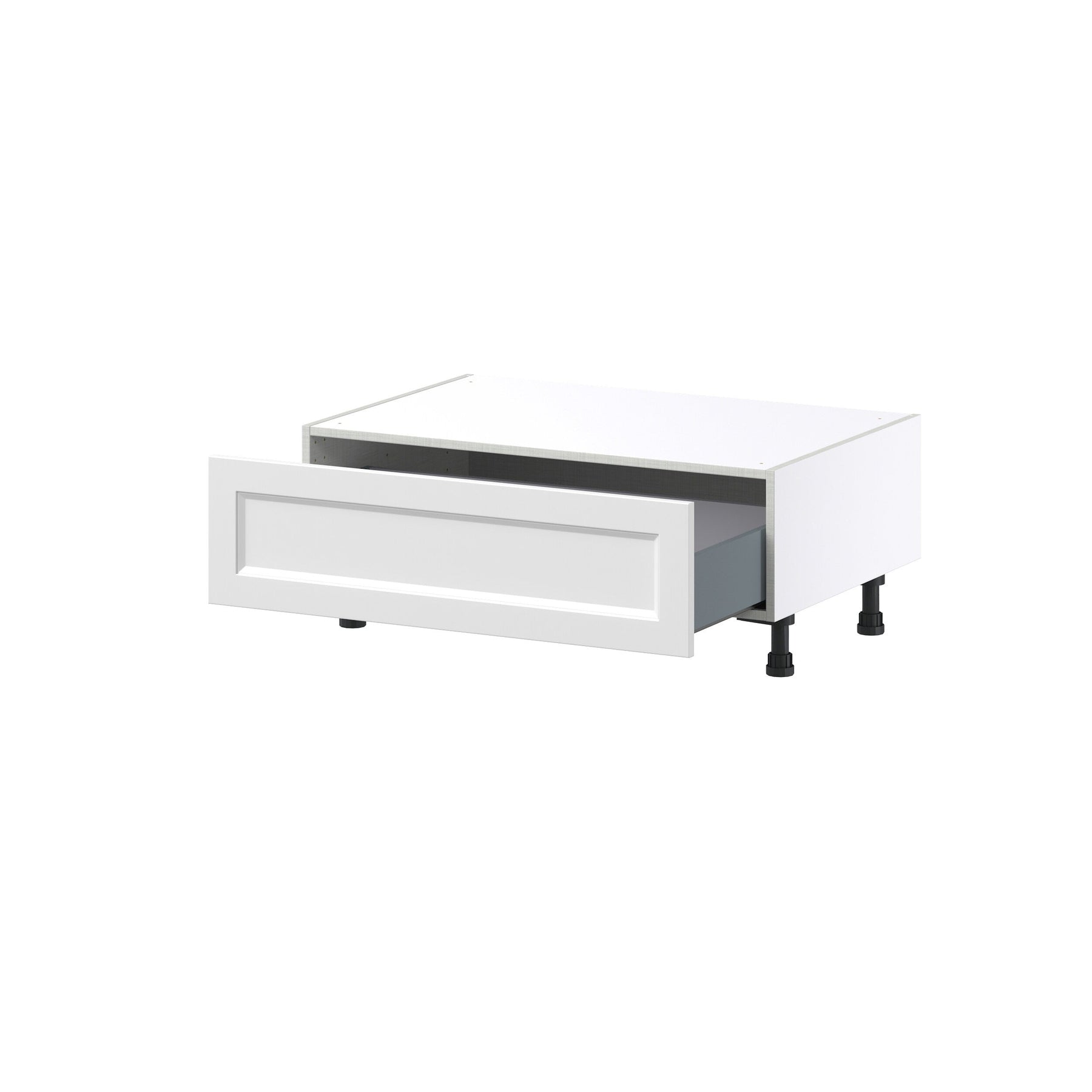The Hugo&Borg Riviera Drawer Base Cabinet exudes a refined sophistication that instantly transforms any room into a designer haven. Its clean shaker lines and chamfered edges add upscale flair, while the luminous white finish brightens the space. Imagine it as a chic bench seat solution under a sunlit window in your mudroom. This cabinet is more than a storage solution—it's a stylish cornerstone for the luxurious home of your dreams.