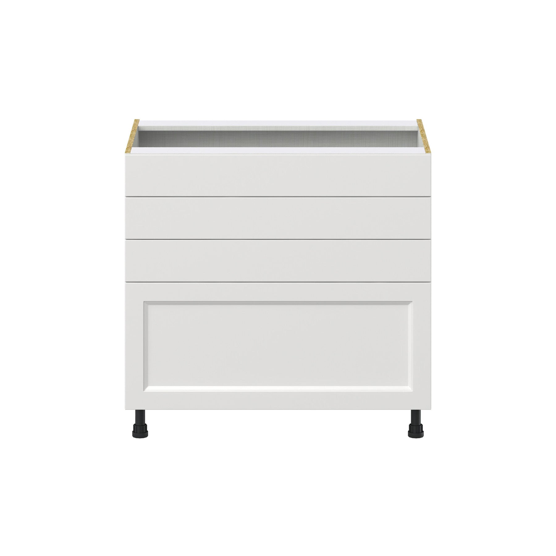 Discover how the Riviera base cabinet can transform a kitchen into a refined masterpiece. Its modern transitional Shaker design introduces an air of sophistication, seamlessly blending into any interior. The chamfered edges exemplify meticulous craftsmanship, while the lush, bright white finish invites light and clarity into the space. Imagine pairing it with sleek quartz countertops or enhancing your cooking haven with vibrant cookware displays. This cabinet is not merely a storage solution—it's an invitation to live luxuriously.