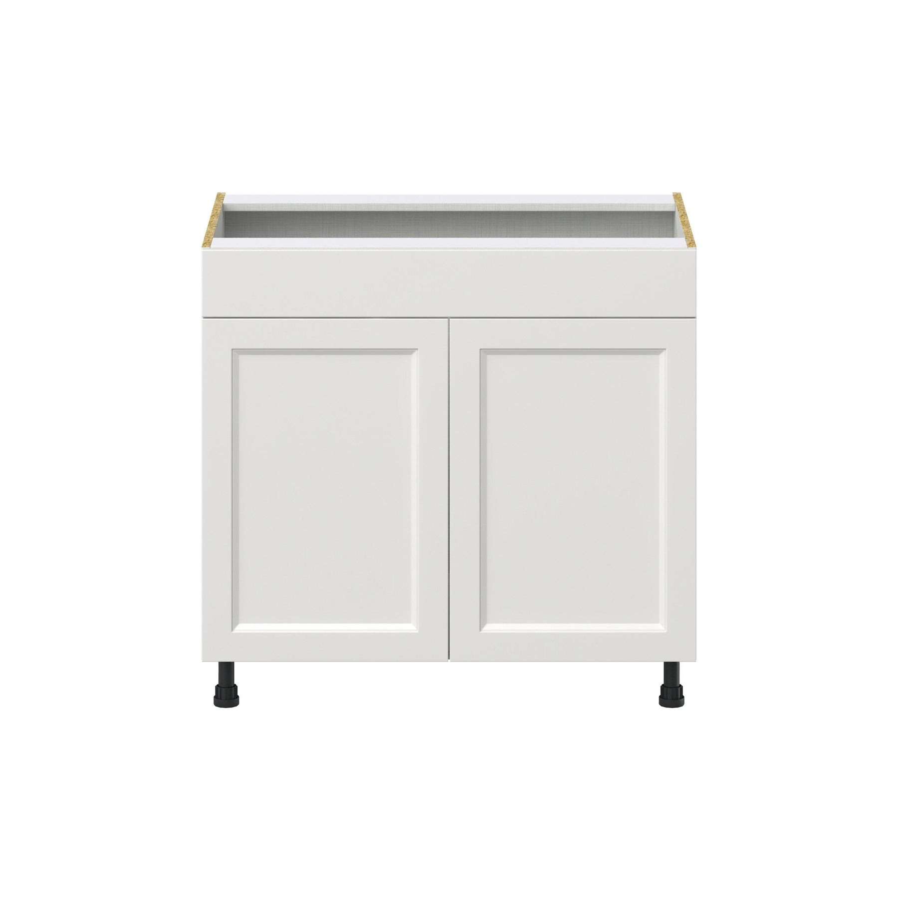 Enhance your kitchen's elegance with the Hugo&Borg Riviera Sink Base Cabinet, featuring a chic Bright White finish and transitional Shaker style. This cabinet offers 20% more storage thanks to its full access box construction and comes fully assembled for hassle-free installation. It's designed to resist stains and moisture, ensuring long-term durability and beauty.
