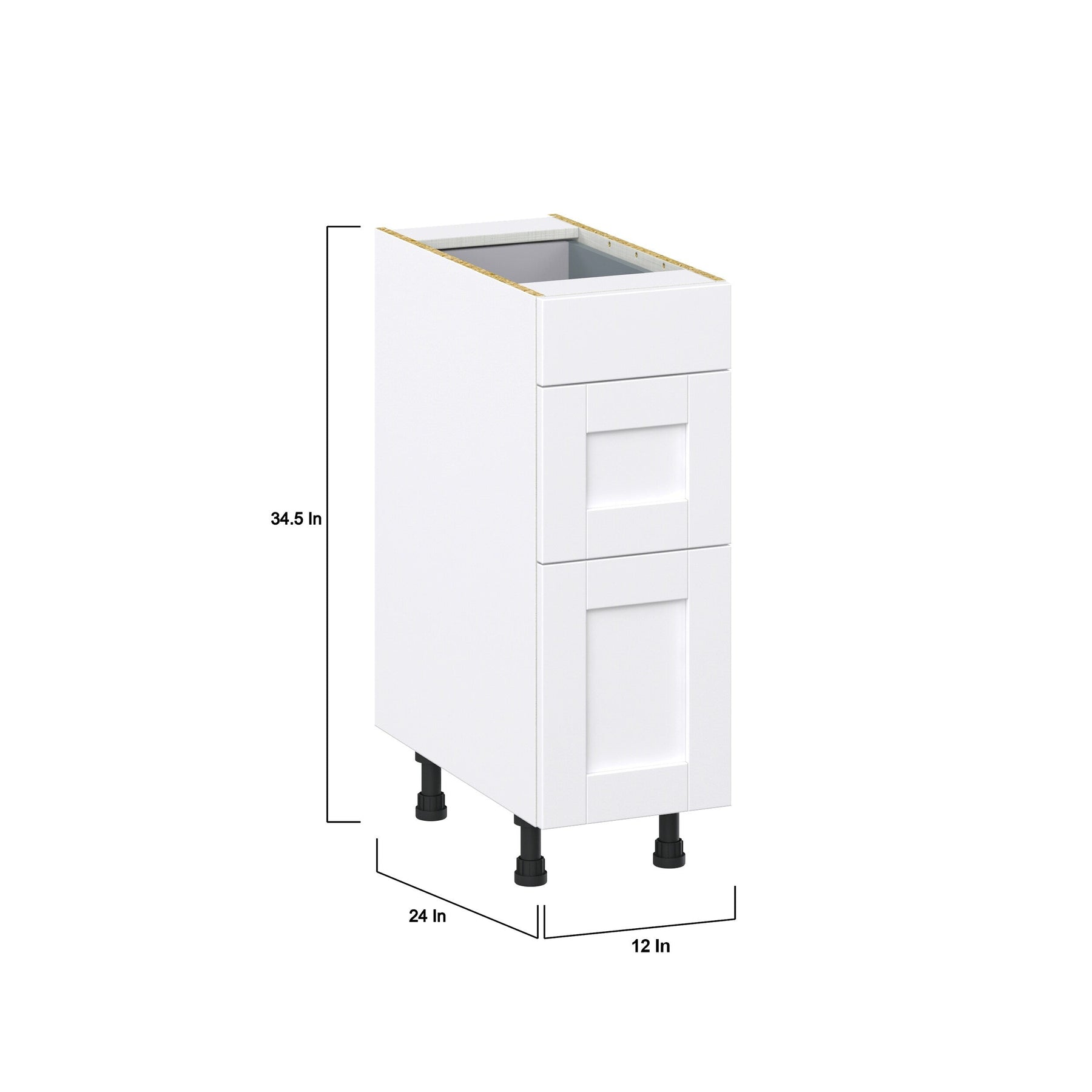 Hugo&Borg Rosemont 12-in W x 34.5-in H x 24-in D Glacier White 3-Drawer Base Fully Assembled Cabinet (Recessed Panel Style)