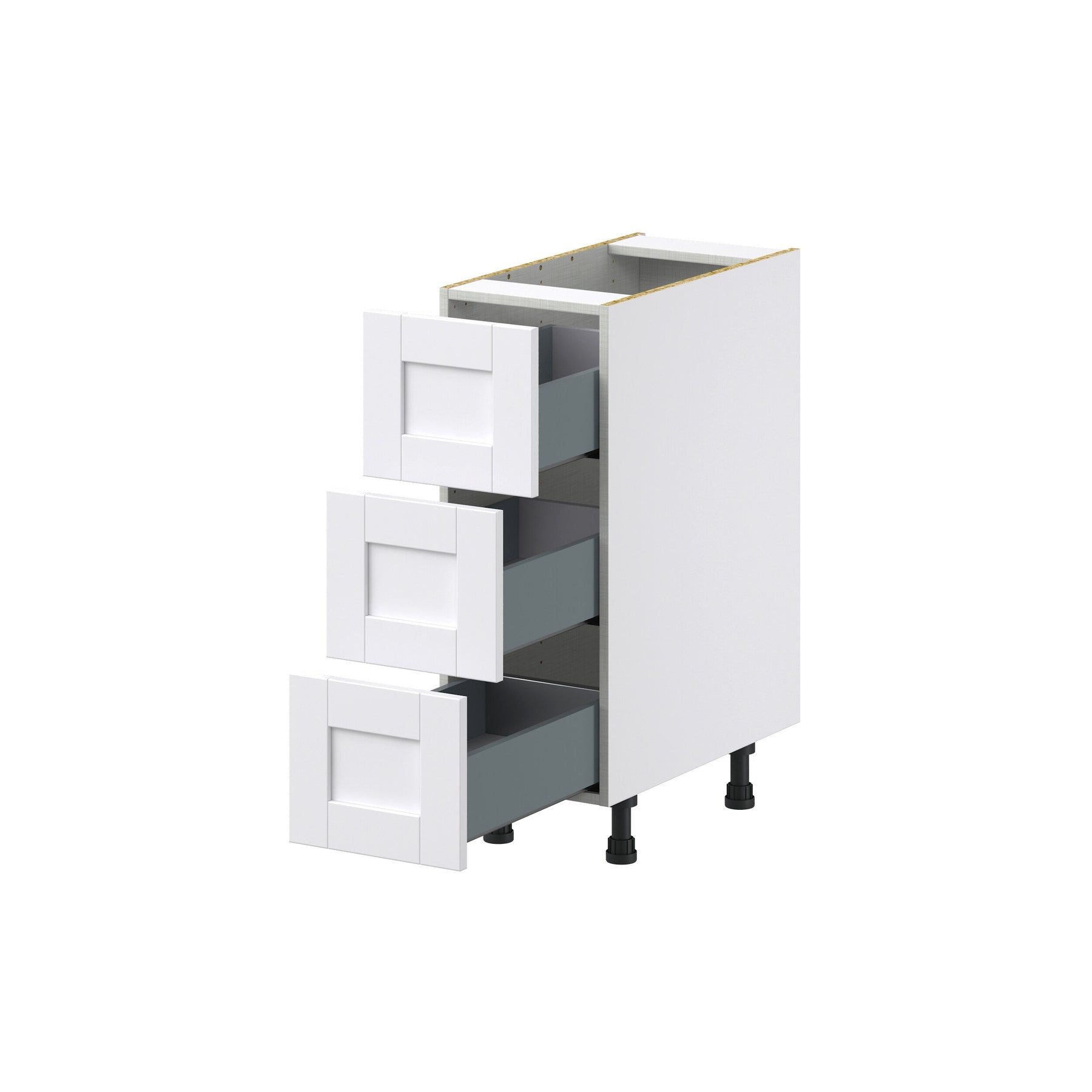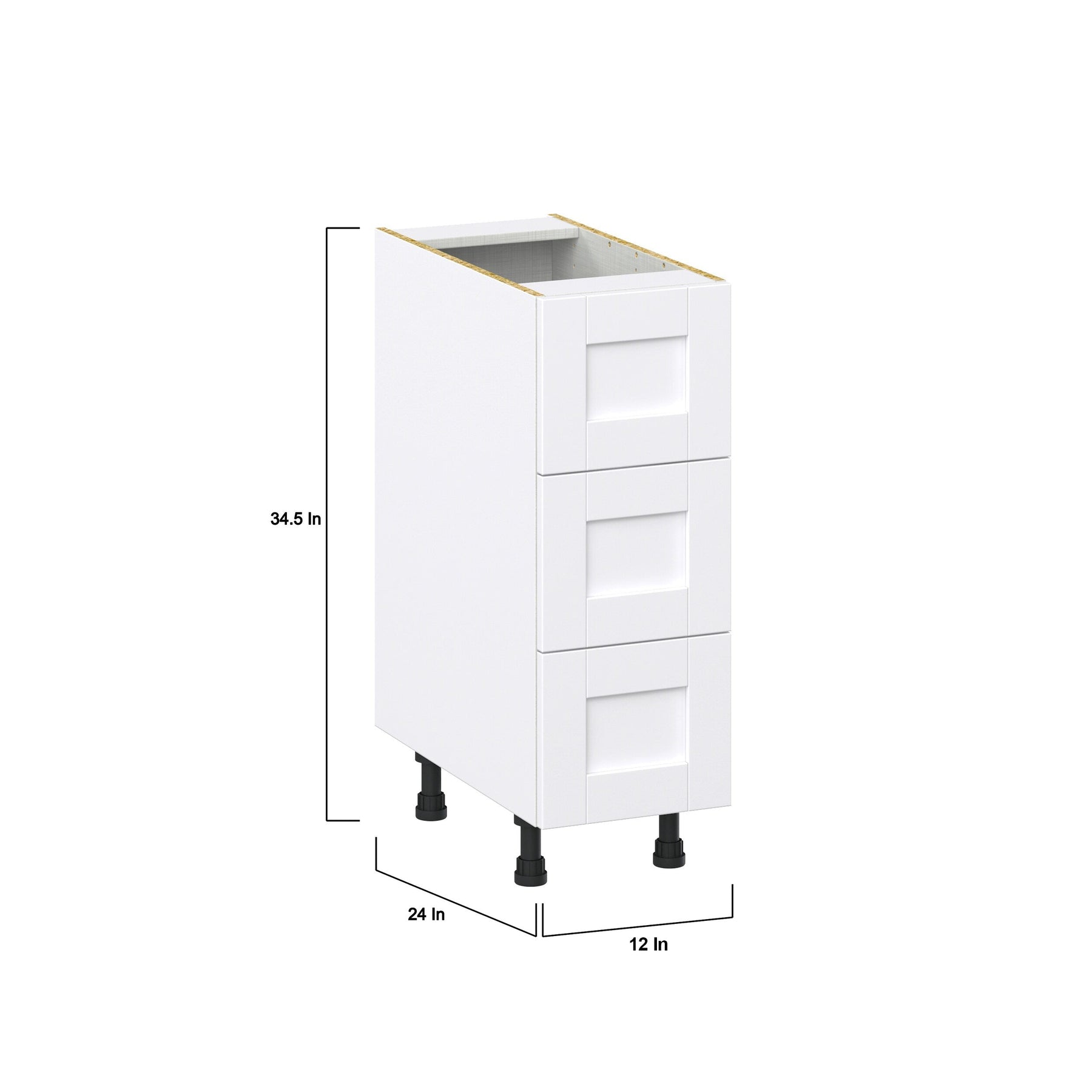 The Hugo&Borg Rosemont 3-Drawer Base Cabinet redefines elegance with its crisp Glacier White finish, a transformative presence in any kitchen. Its frameless design exudes contemporary charm, while the understated recessed panel style offers a nod to classic taste. Perfect for storing all your essentials without sacrificing style, it becomes a focal point that blends functionality with artistry. Integrate this piece into your kitchen to enjoy a refreshingly sophisticated yet practical embodiment of modern living.