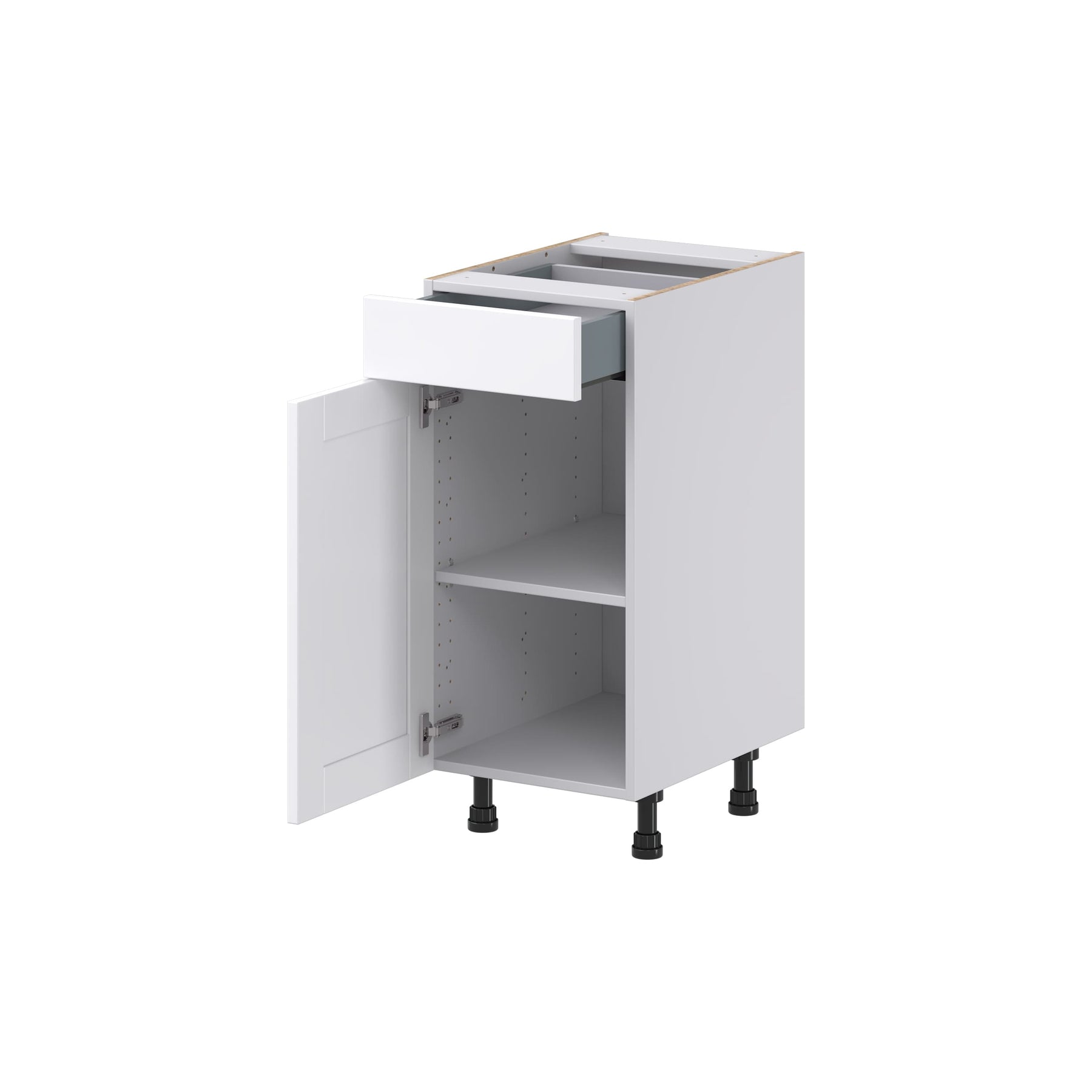The Hugo&Borg Rosemont Base Cabinet in Glacier White stands out with its sleek Shaker design and functionality. This fully assembled cabinet offers soft-close drawers, a moisture-resistant melamine surface, and adjustable legs for easy installation. Perfect for professionals and DIY enthusiasts, it creates a beautiful, organized space with ease.