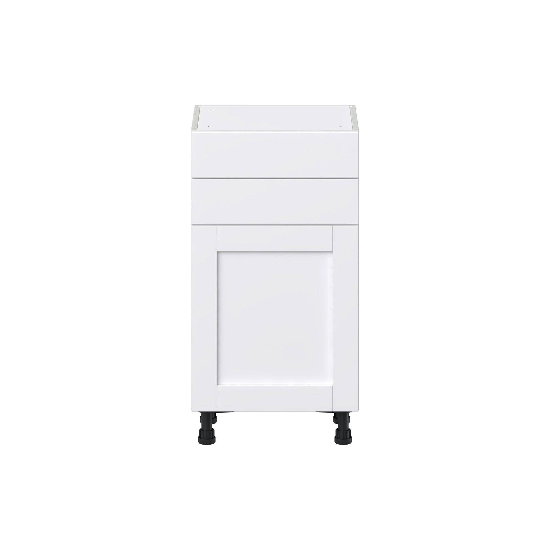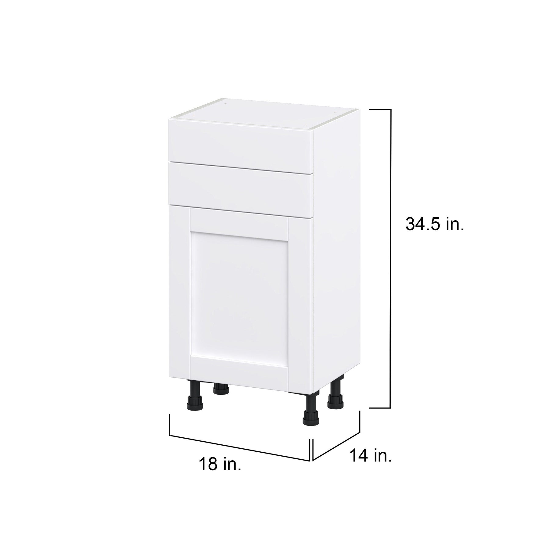 The Hugo&Borg Rosemont Cabinet in Glacier White delivers both form and function with its flat panel Shaker style. This 18-inch wide, fully assembled base cabinet offers ample storage with two soft-close drawers and adjustable legs for optimal installation, making it a perfect addition to any modern kitchen or bathroom space.