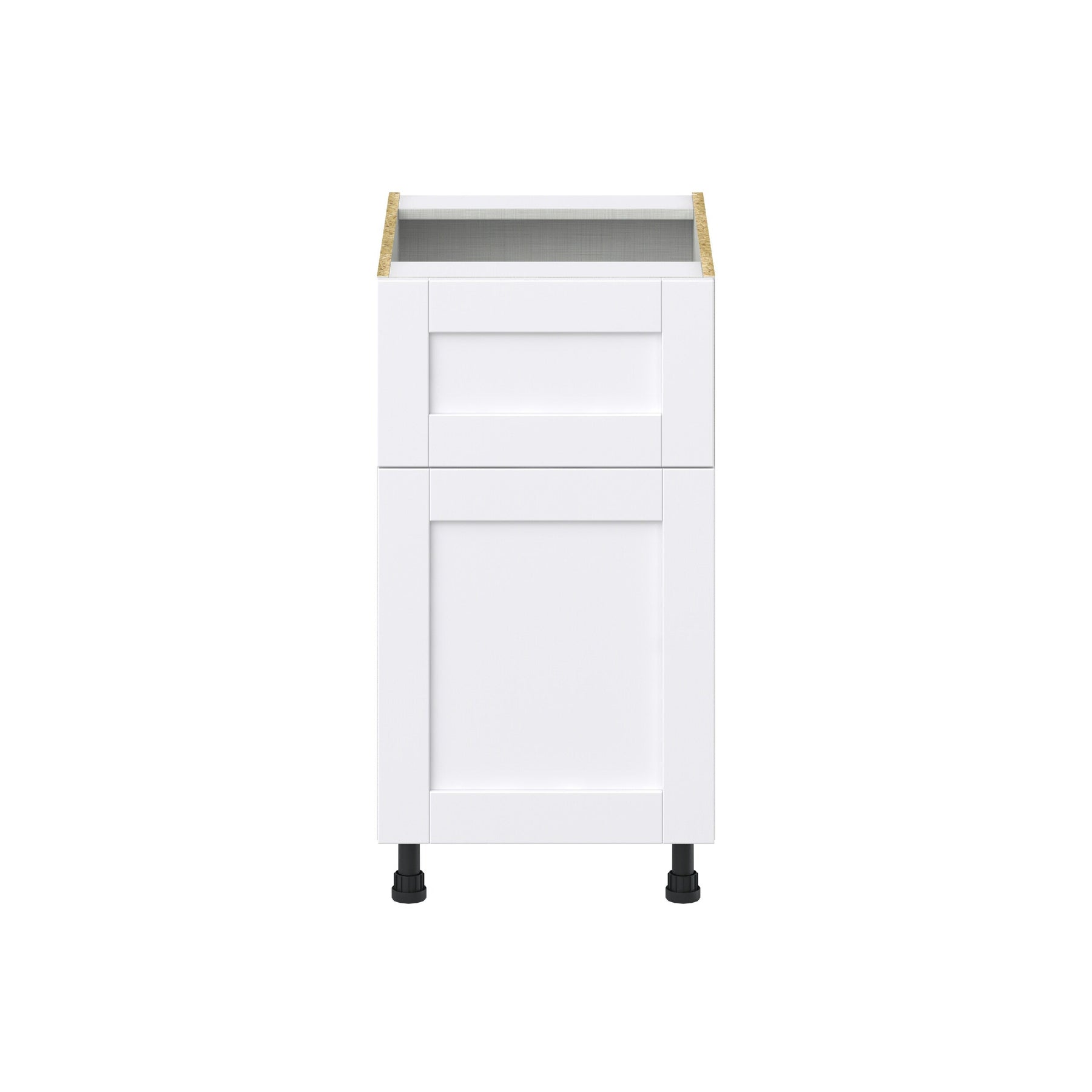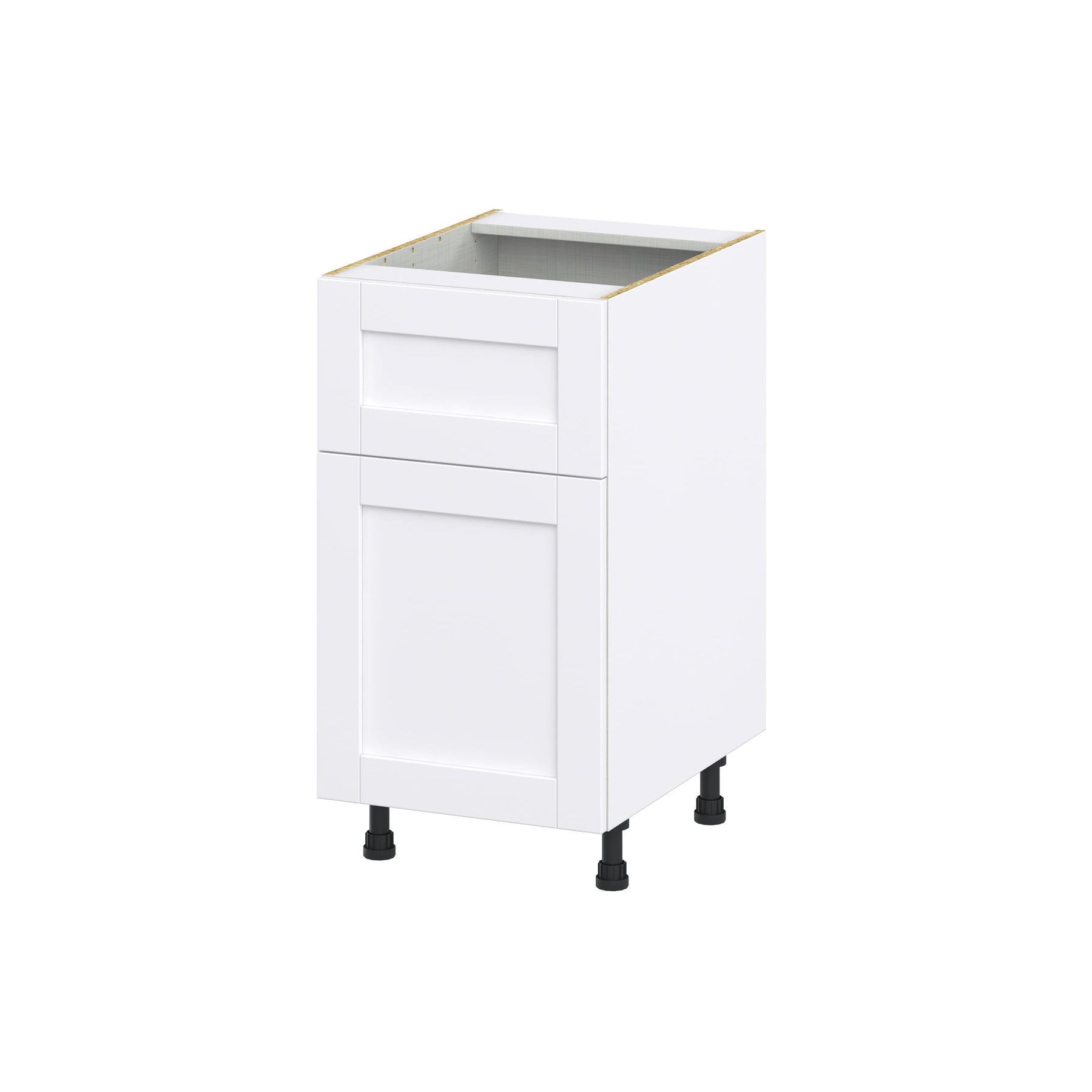 Upgrade your space with the Hugo&Borg Rosemont Base Cabinet, where sleek design meets practical storage. Its glacier white finish and shaker style seamlessly blend traditional elegance with modern functionality, making it a stylish centerpiece for any room.