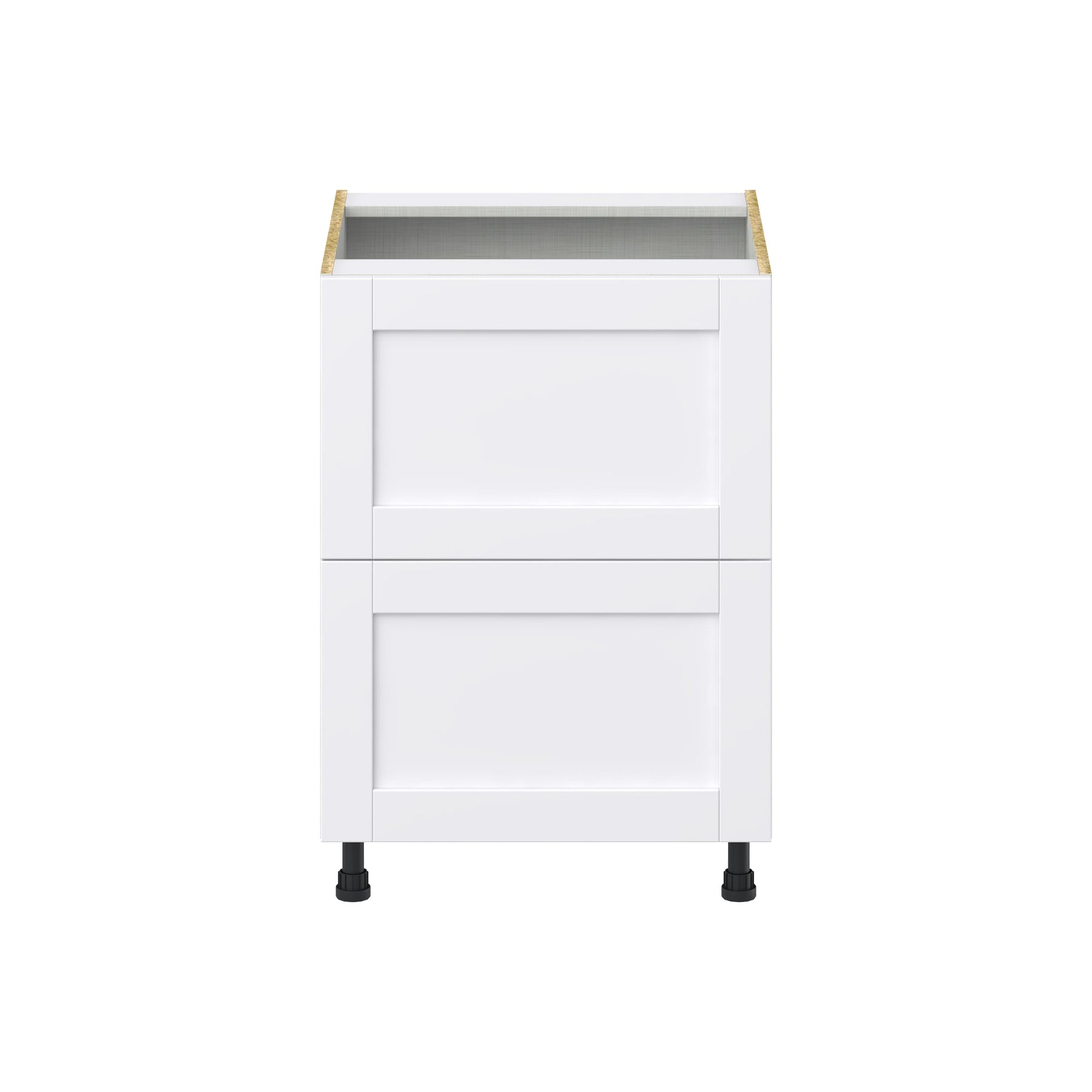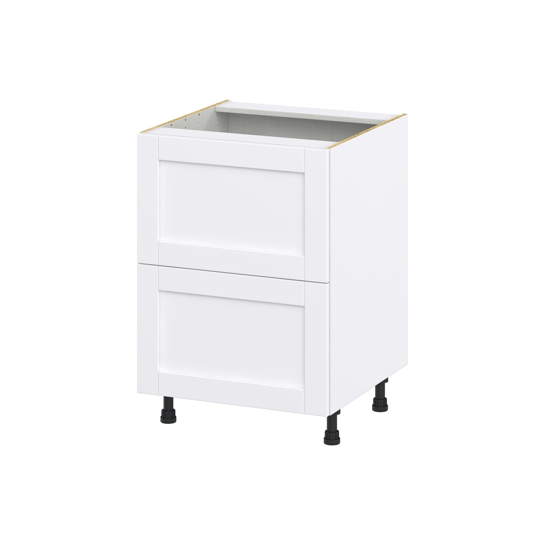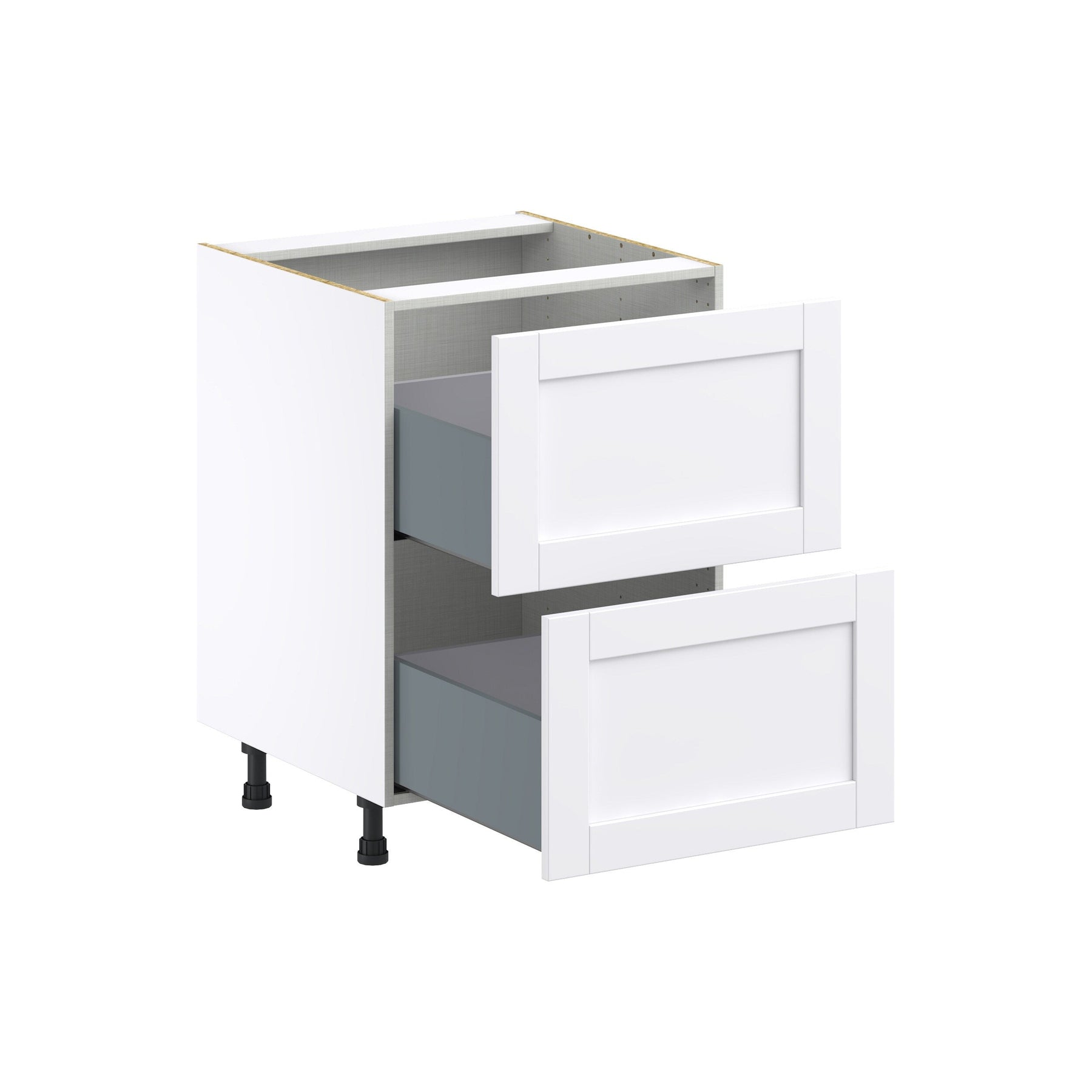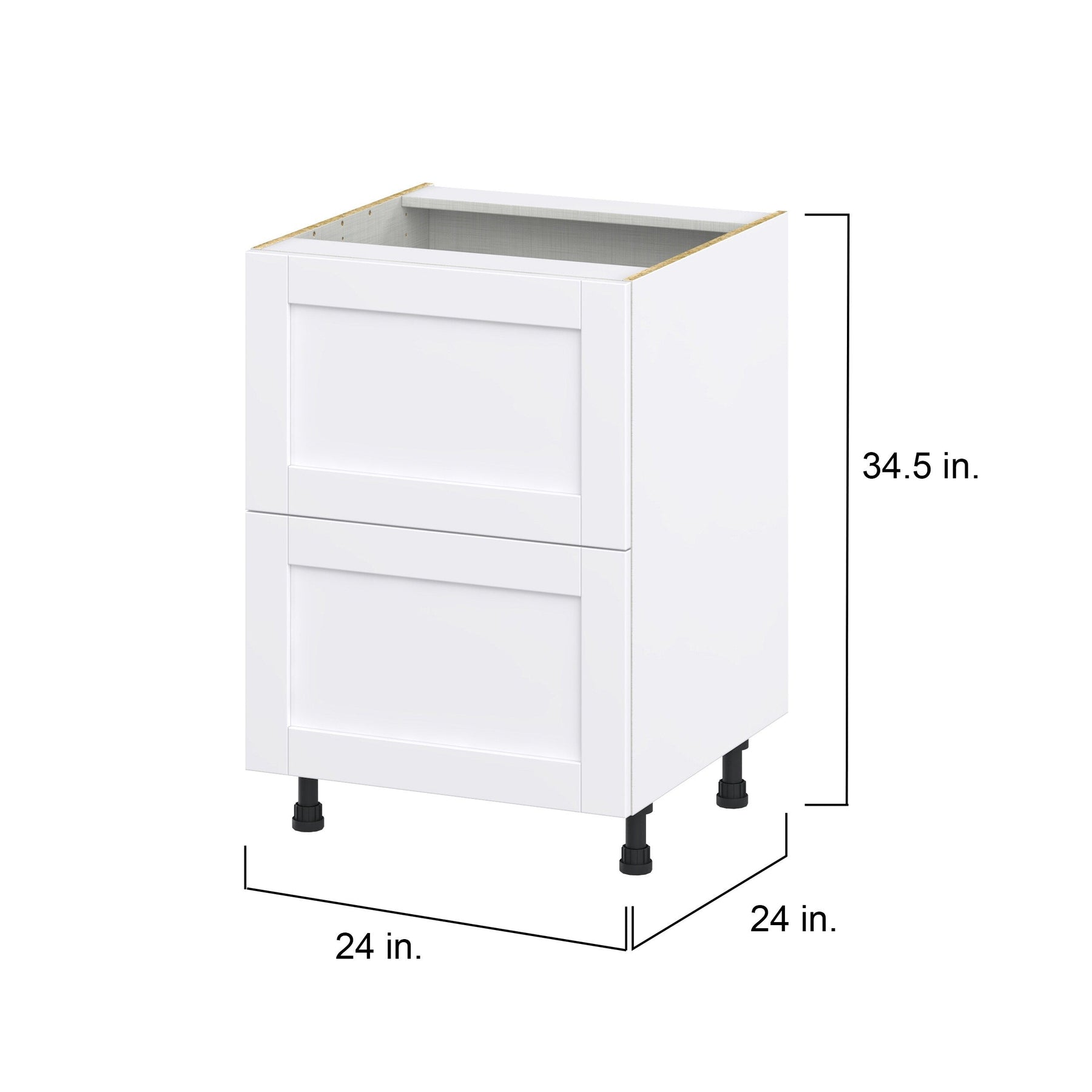 Upgrade your home with the Hugo&Borg Rosemont 24-inch 2-Drawer Base Cabinet in chic Glacier White. This fully assembled cabinet offers a blend of contemporary style and practical functionality, featuring full-access construction and easy-to-clean surfaces, perfect for any modern living space.