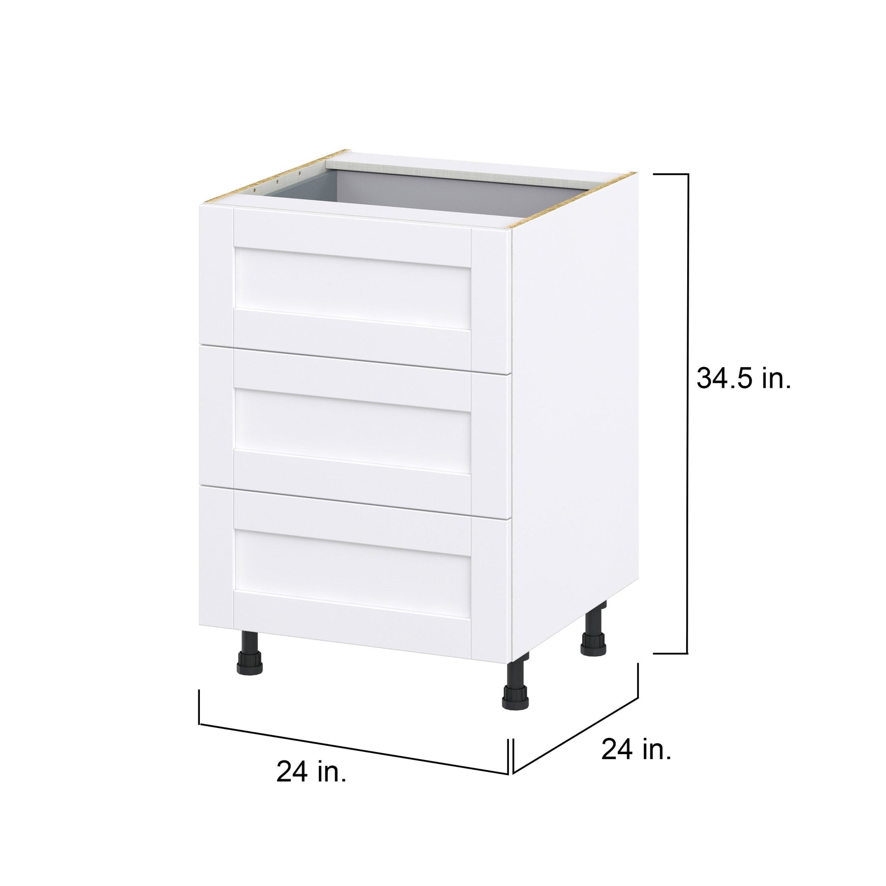 Hugo&Borg Rosemont 24-in W x 34.5-in H x 24-in D Glacier White 3-Drawer Base Fully Assembled Cabinet