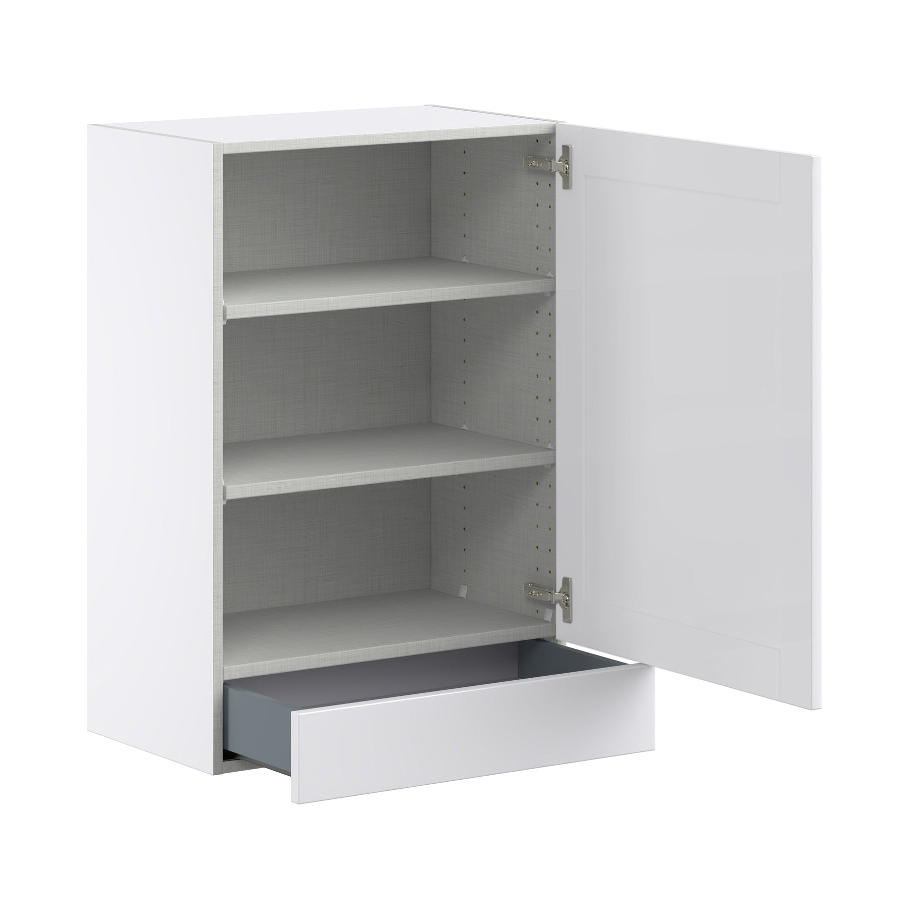 Hugo&Borg Rosemont 24-in W x 35-in H x 14-in D Glacier White 1-Drawer Wall Fully Assembled Cabinet (Flat Panel Shaker Style)