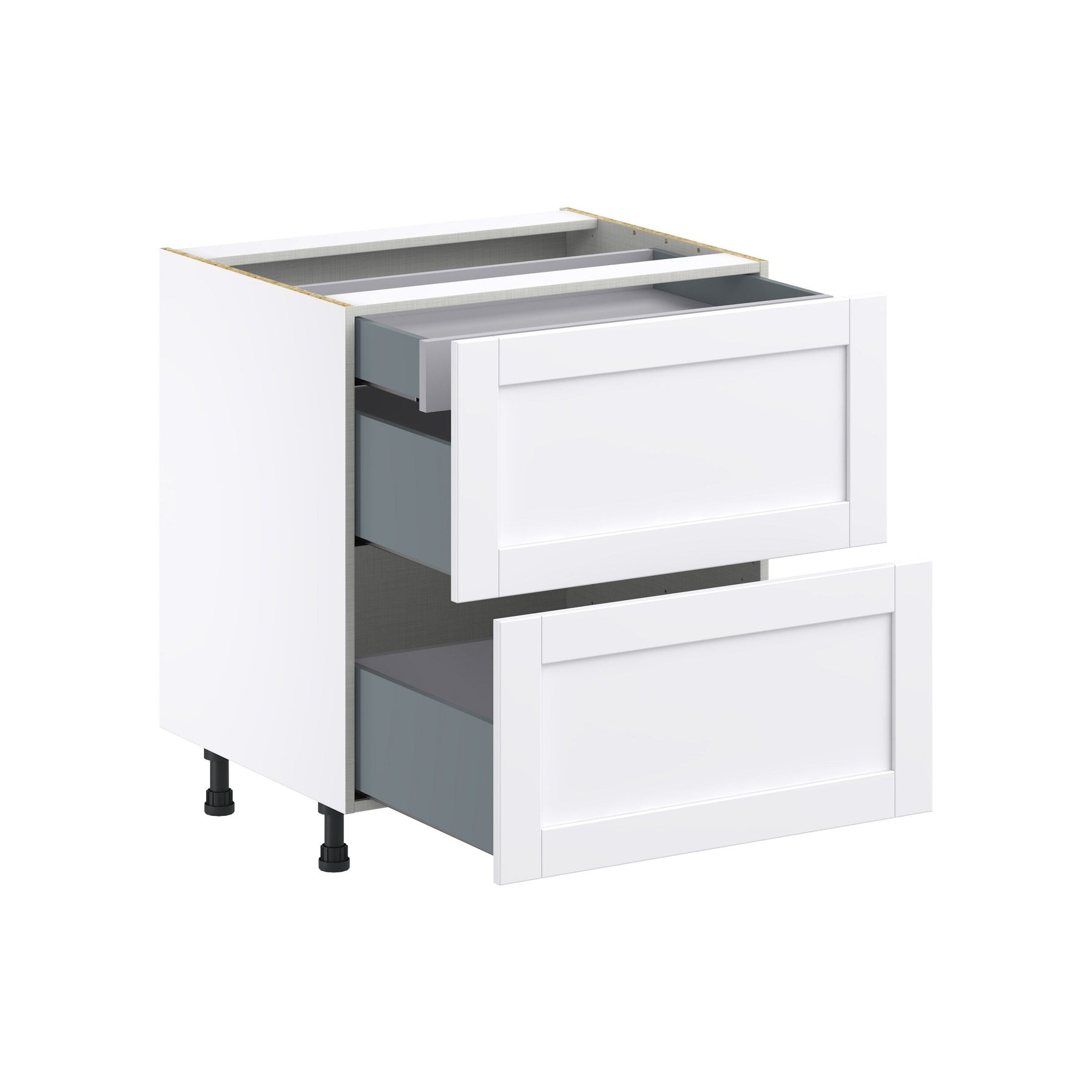 The Hugo&Borg Rosemont 2-Drawer Base Cabinet in Glacier White combines sleek design with functionality. Its full access box construction offers increased storage capacity, while premium soft-close drawers ensure a smooth and quiet operation. Ideal for kitchens that prioritize style and efficiency.