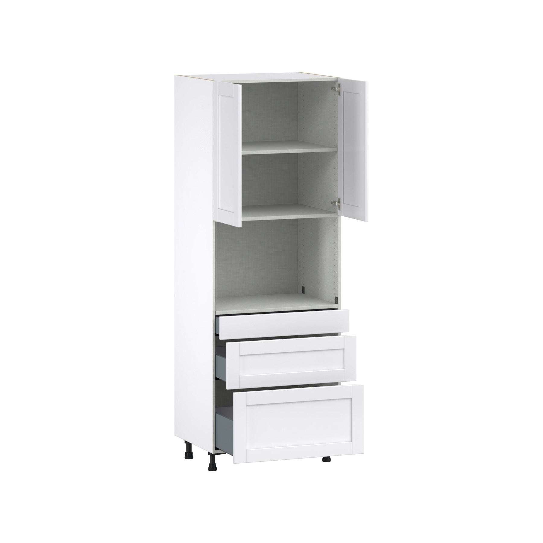 Hugo&Borg Rosemont 30-in W x 84.5-in H x 24-in D Glacier White 3-Drawers Pantry Fully Assembled Cabinet (Flat Panel Shaker Style)