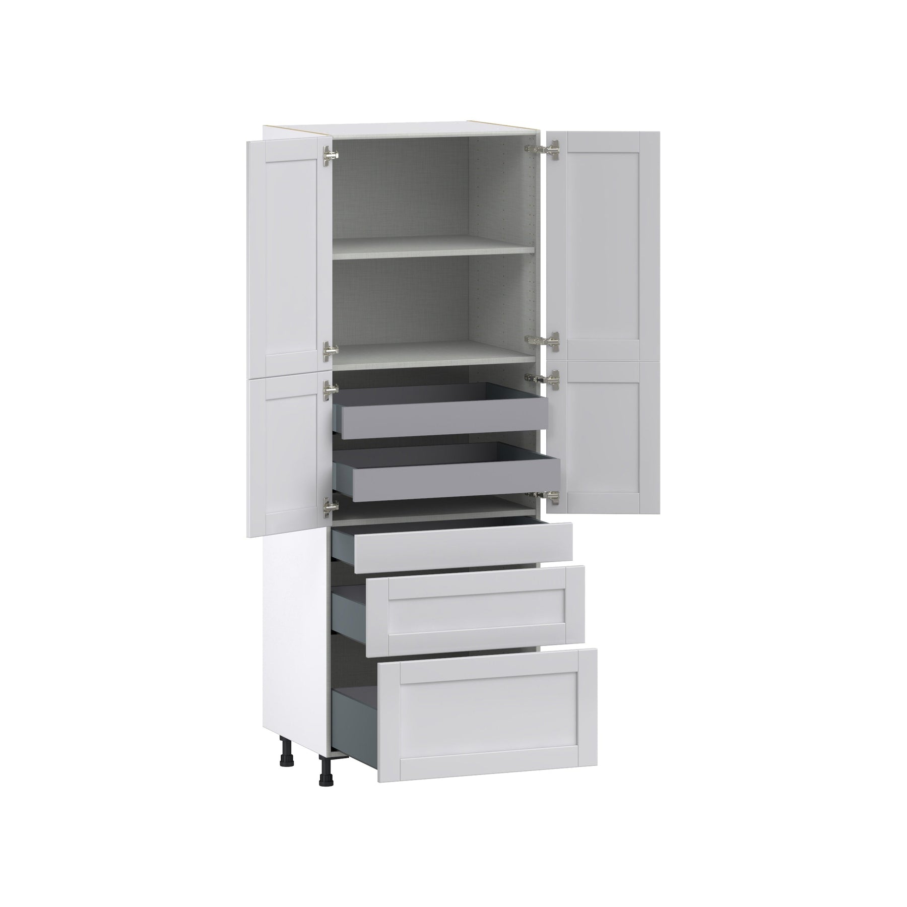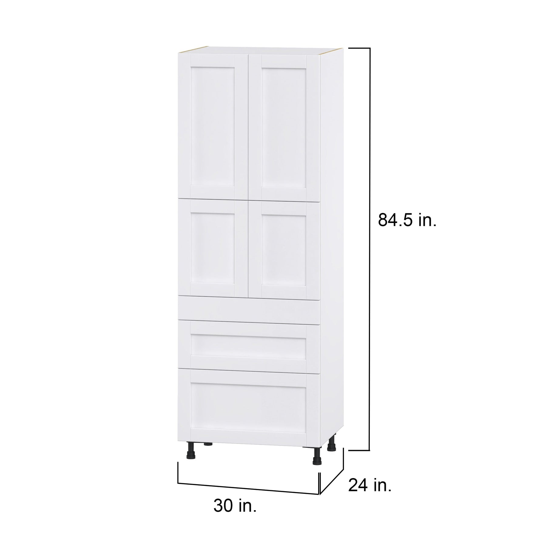 Hugo&Borg Rosemont 30-in W x 84.5-in H x 24-in D Glacier White 3-Drawers Pantry Fully Assembled Cabinet (Flat Panel Shaker Style)