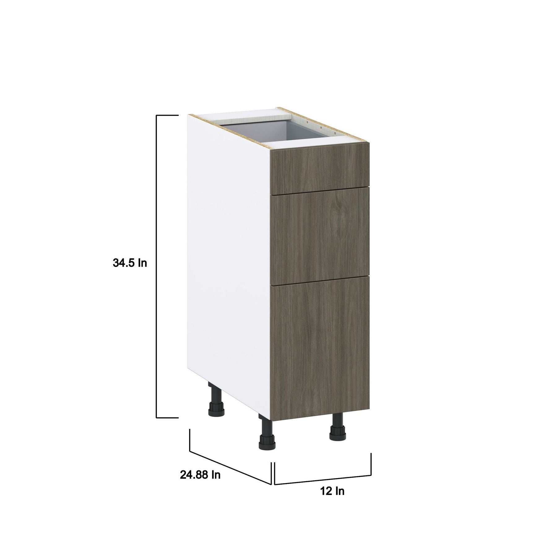Hugo&Borg Savane 12-in W x 34.5-in H x 24-in D Textmel 3-Drawer Base Fully Assembled Cabinet (Flat Panel Style)
