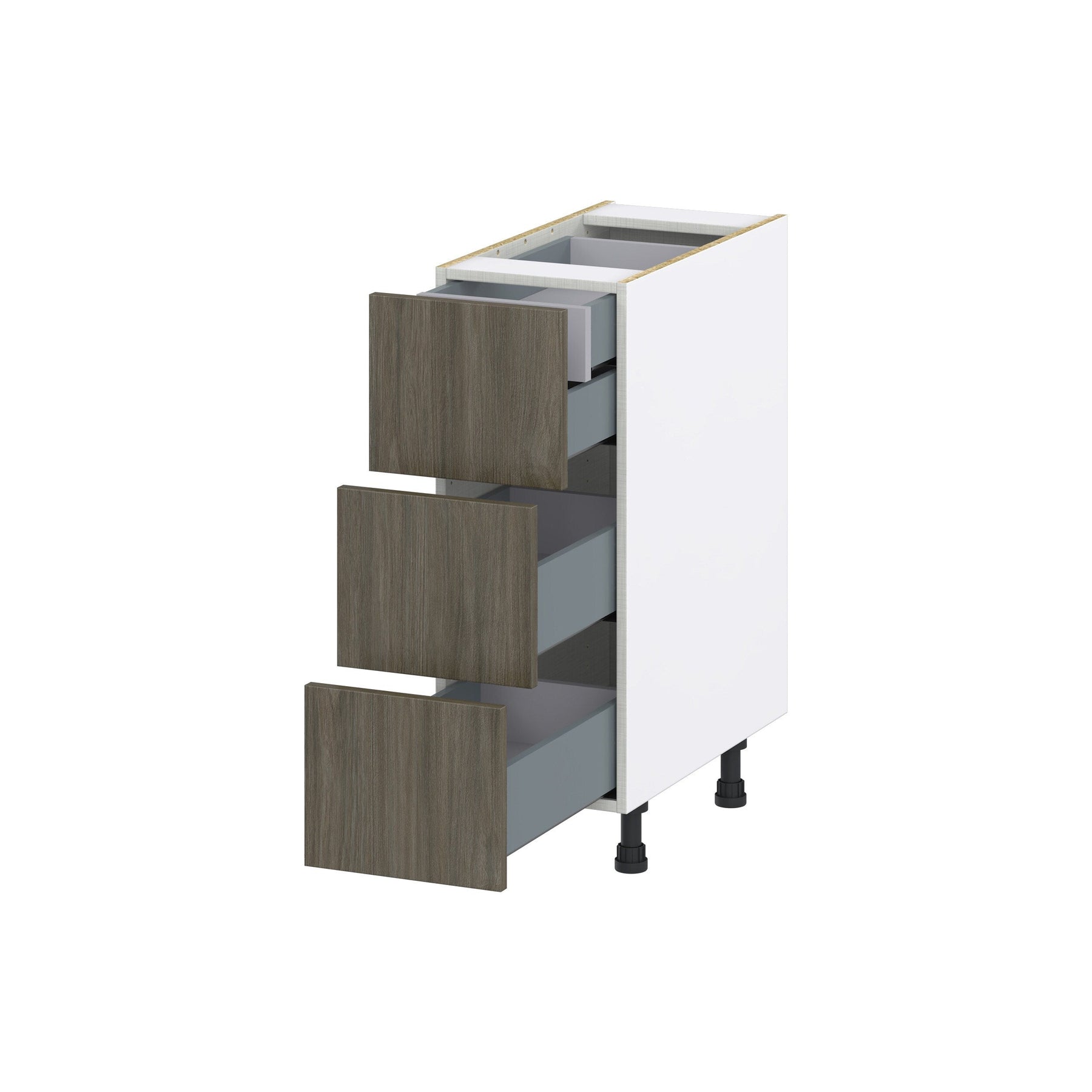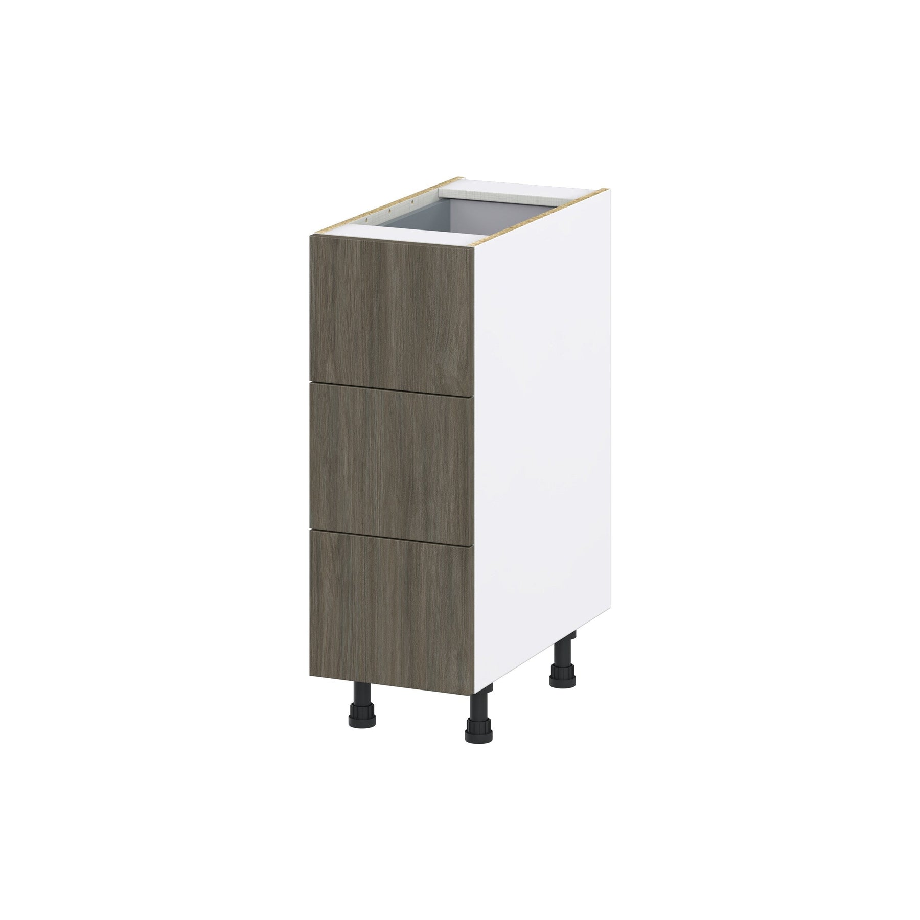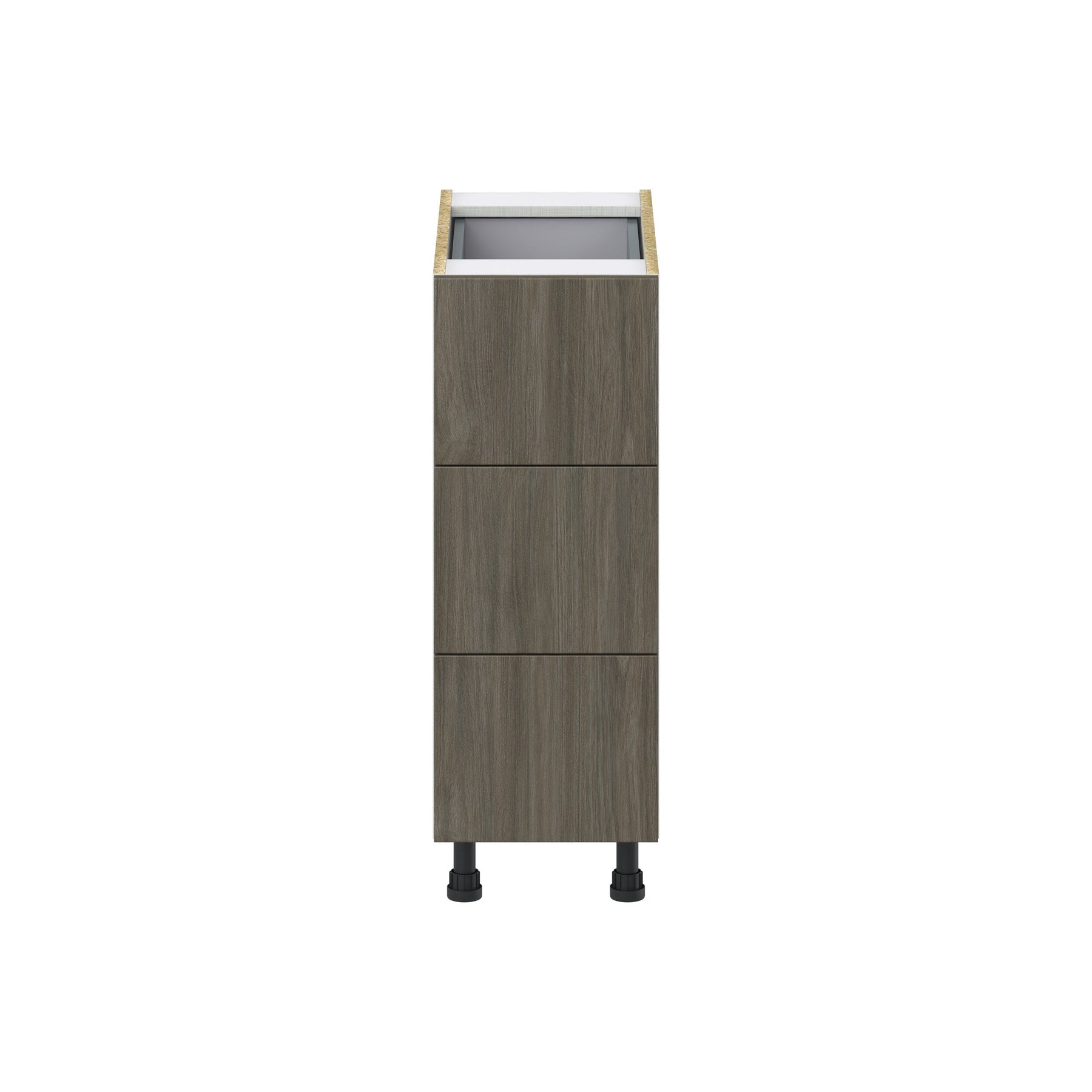 Upgrade your kitchen or workspace with the Hugo&Borg Savane 4-Drawer Base Cabinet, featuring a sleek flat panel style. Its frameless, fully assembled design maximizes storage space while the Textmel finish offers a modern look with the warmth of wood. Soft-close drawers ensure durability and quiet operation, perfect for any high-functioning space.