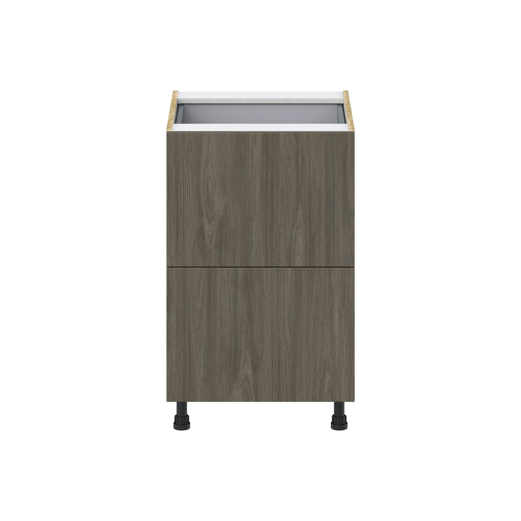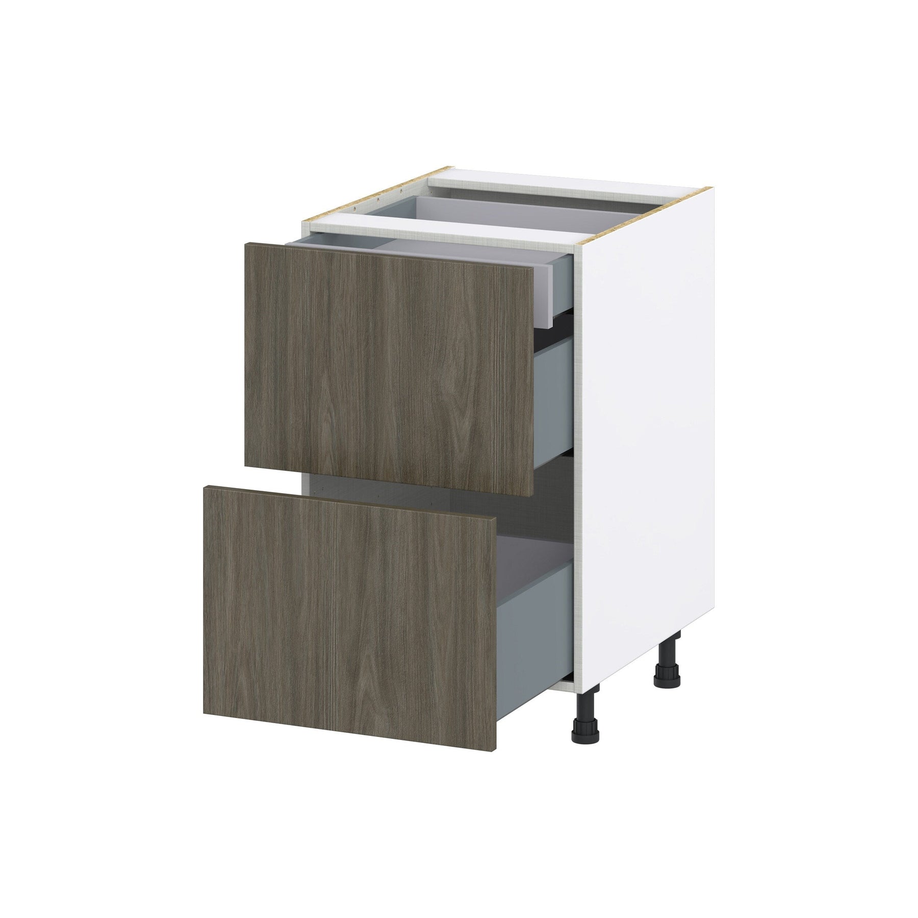 The Hugo&Borg Textmel 3-Drawer Base Cabinet offers modern elegance with its European-style frameless construction and textured melamine finish. These fully assembled cabinets provide up to 20% more storage, scratch-resistance, and soft-close technology for a seamless home upgrade.