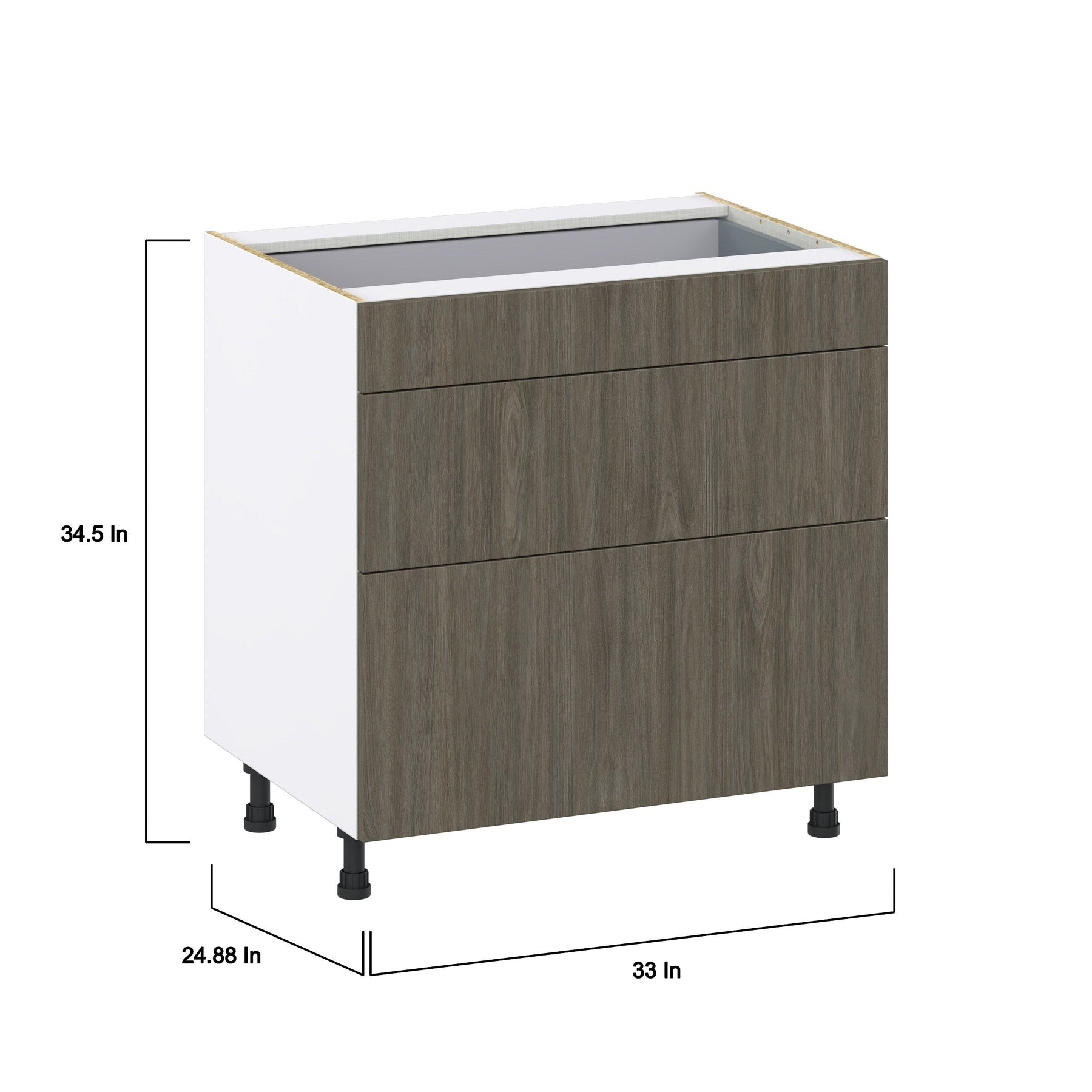 Hugo&Borg Savane 33-in W x 34.5-in H x 24-in D Textmel 3-Drawer Base Fully Assembled Cabinet (Flat Panel Style)