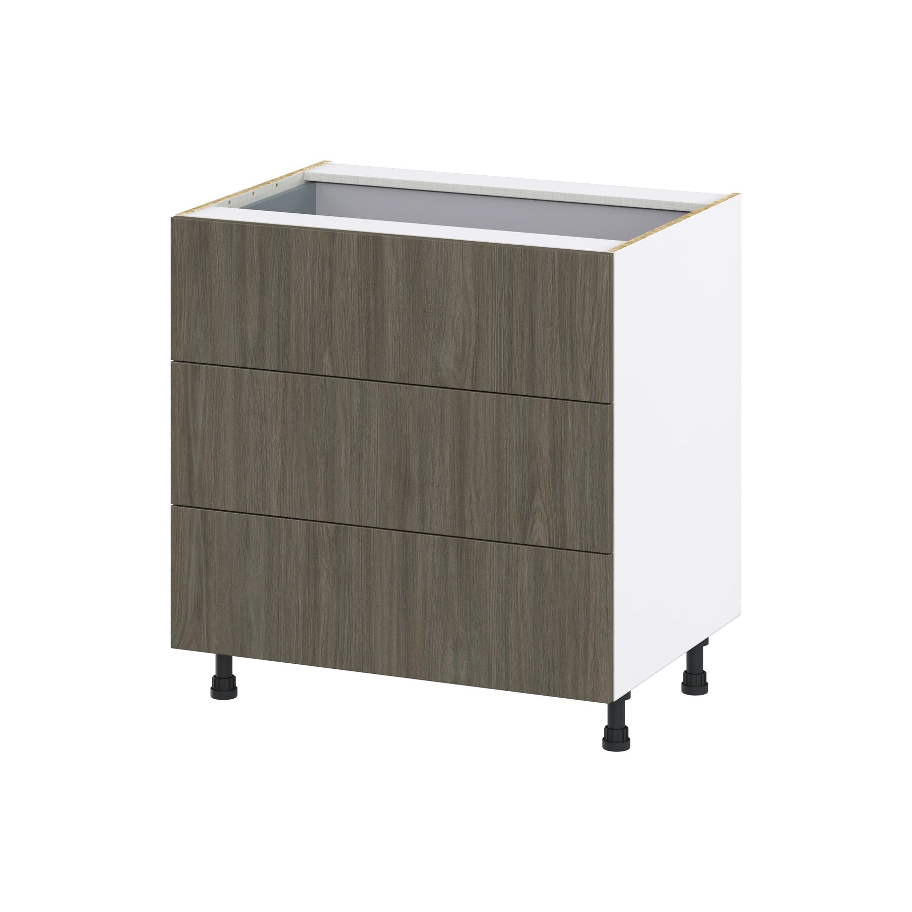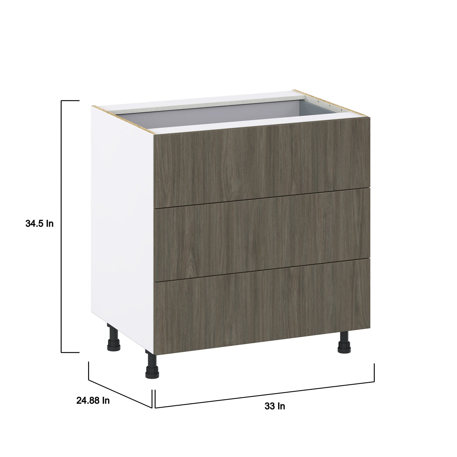 The Hugo&Borg Savane 33-inch base cabinet combines sleek modern design with practical functionality. Its fully assembled frameless construction offers an impressive 20% more storage space, while the textured woodgrain melamine provides a stylish and durable surface that resists scratches and moisture.