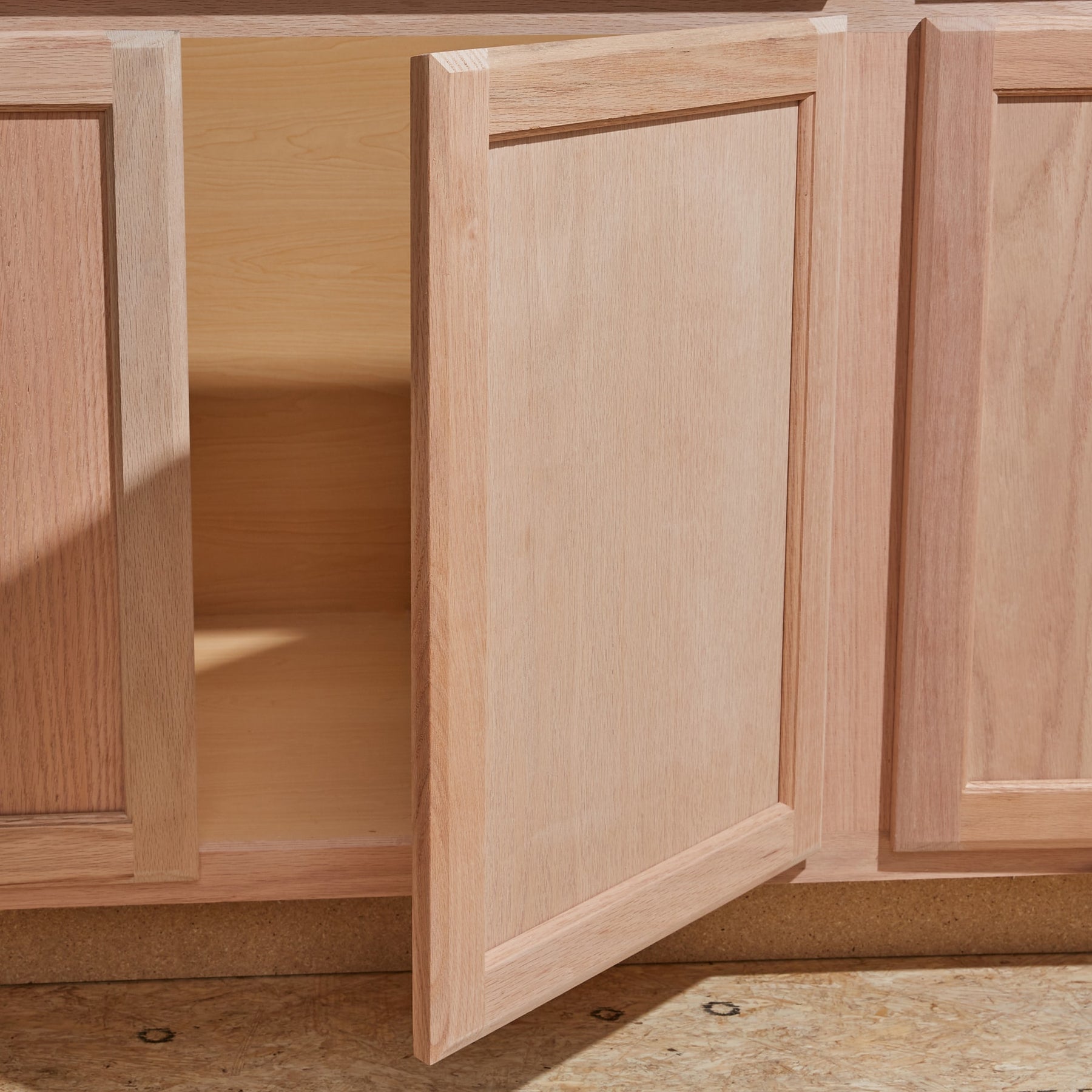 Customize your kitchen with this unfinished oak sink base—order now and finish it to perfectly match your space.