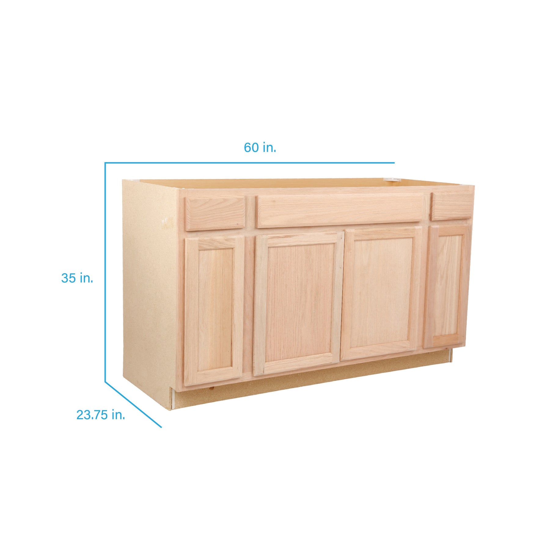 Project Source Oak Brook 60-in W x 35-in H x 23.75-in D Unfinished Oak Sink Base Stock Cabinet, Fully Assembled