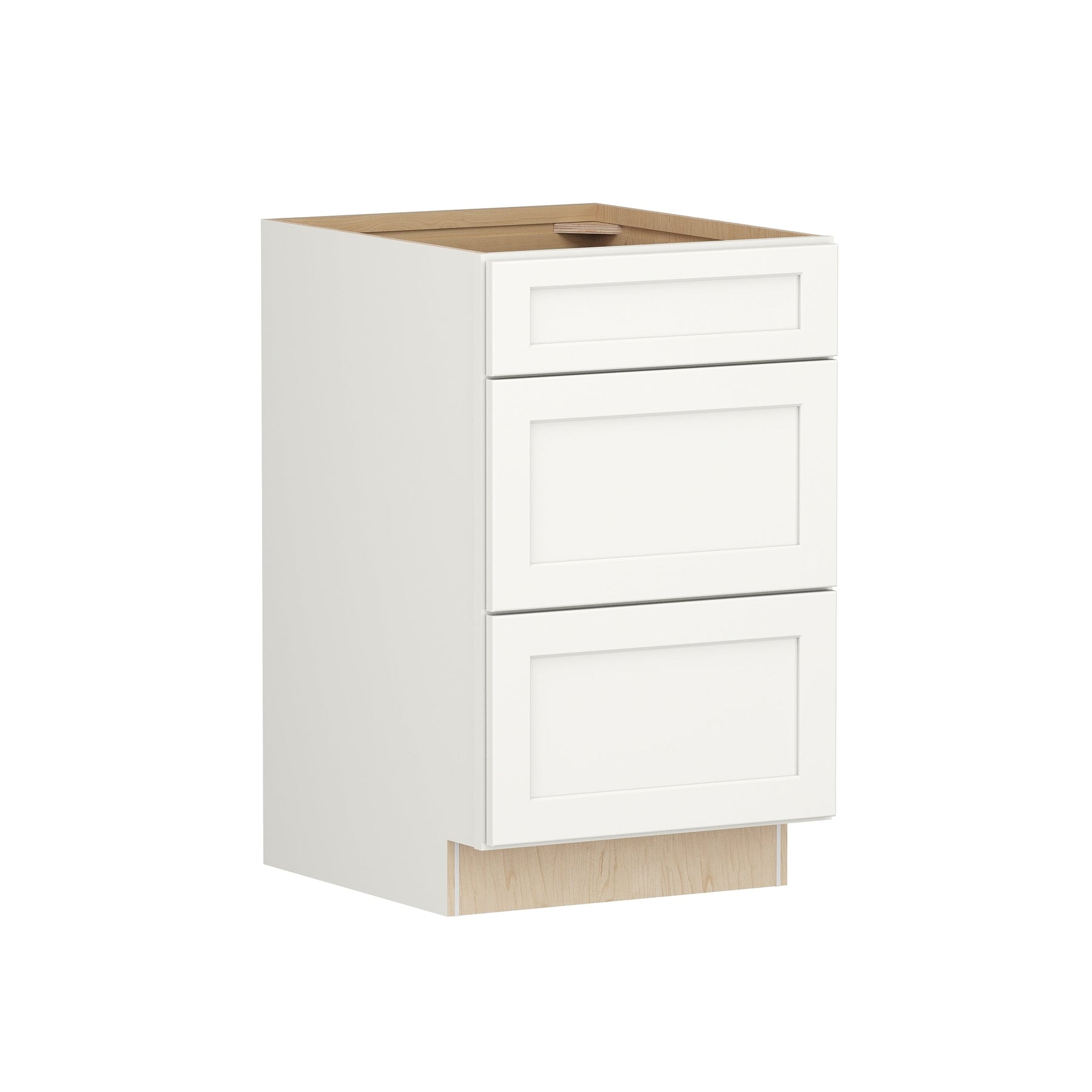 The Shenandoah PRO Express Breckenridge Cabinet is a premium 3-drawer base unit crafted from durable plywood with a beautiful linen full-overlay finish. Enjoy the sophistication of Shaker styling with full overlay doors that emphasize sleekness and easy accessibility. Effortless soft-close drawers and superior durability make this cabinet ideal for modern home designs.