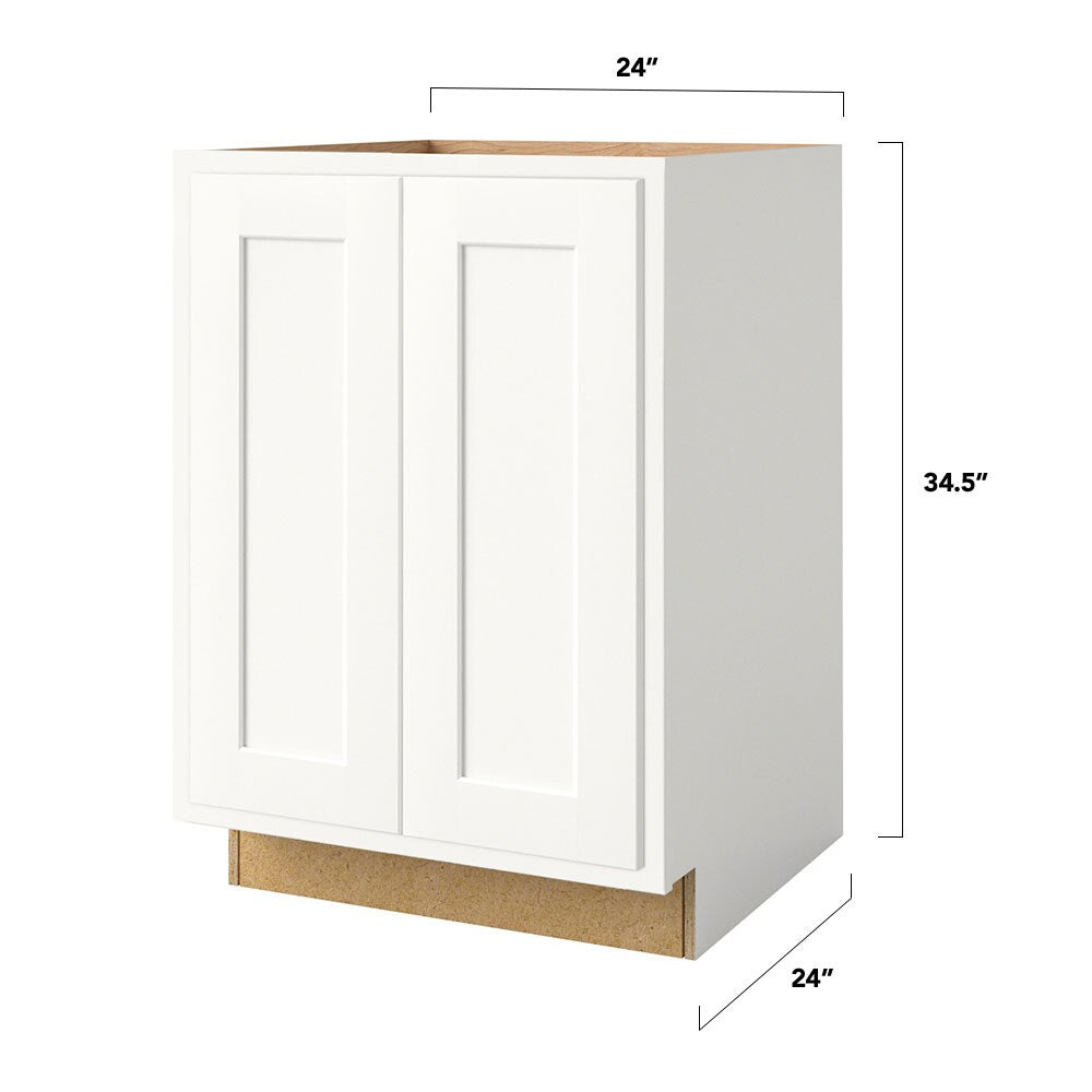 The Shenandoah PRO Express Breckenridge Linen Base Cabinet offers timeless elegance with a modern twist. This fully assembled 24-in cabinet features a recessed panel Shaker door style, crafted from durable plywood to ensure lasting quality. With its soft-close technology and versatile design, it's an ideal choice for home renovations.