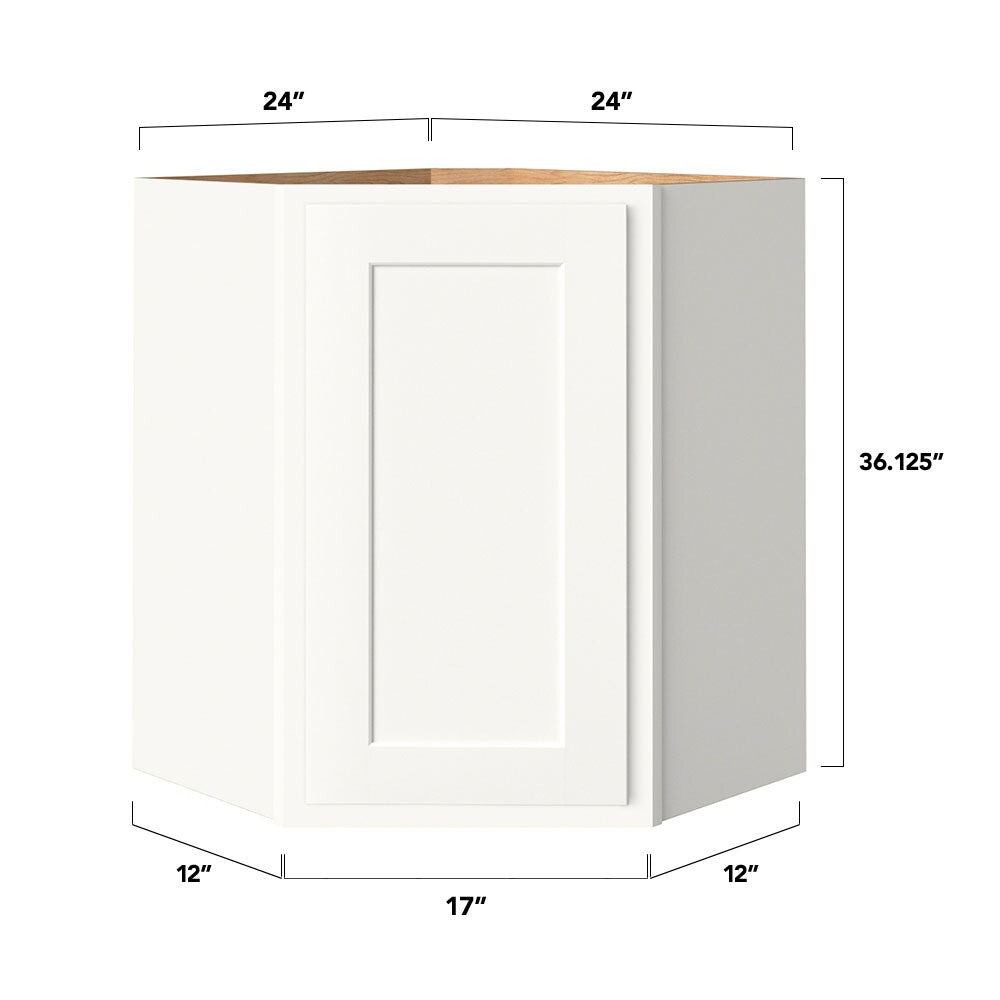 Shenandoah PRO Express Breckenridge 24-in W x 36.125-in H x 15-in D Linen Partial Overlay Diagonal Corner Wall Fully Assembled Plywood Cabinet (Recessed Panel Shaker Style)