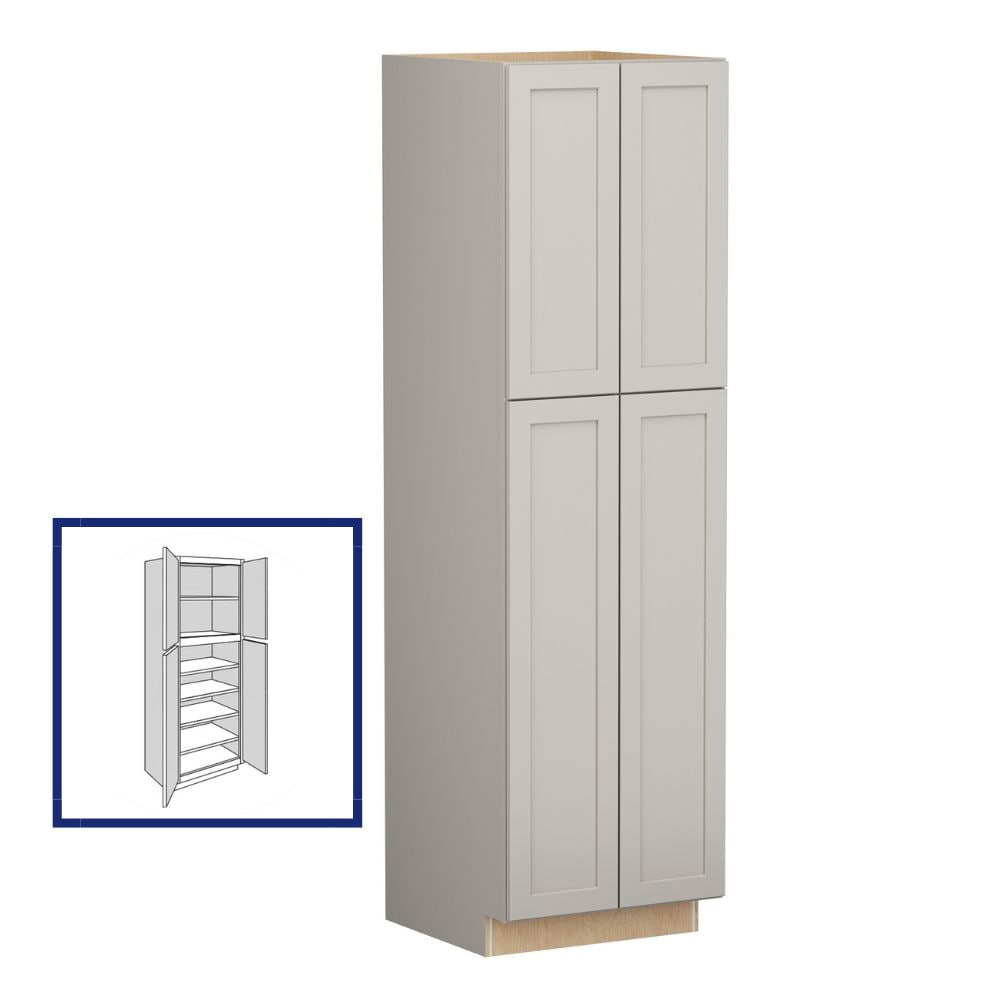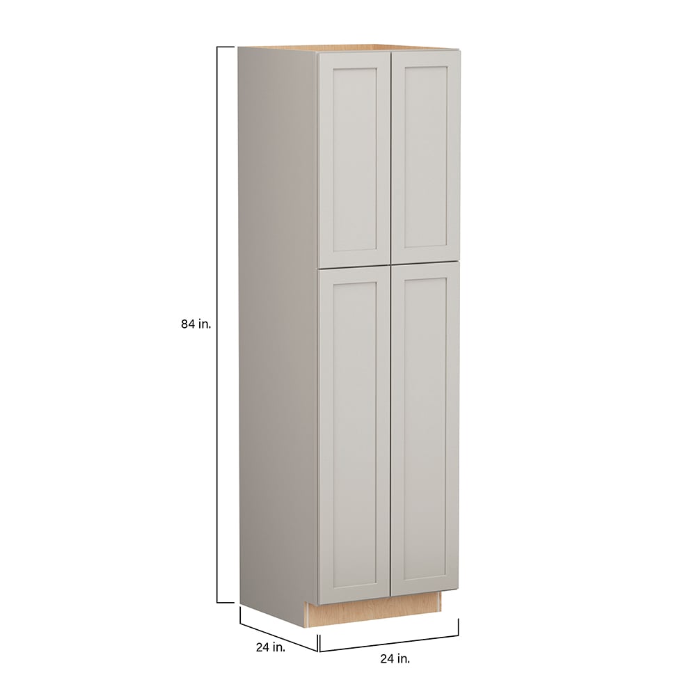 The Breckenridge 24x84 Stone Pantry Cabinet from Shenandoah PRO Express combines functional storage with modern style. Its plywood construction ensures strong durability, while the full overlay Shaker doors add a sleek aesthetic to any kitchen or utility space. This fully assembled pantry is designed for seamless installation and optimal convenience.