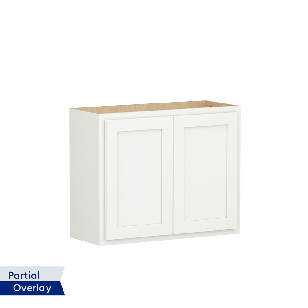 Shenandoah PRO Express Breckenridge 30-in W x 24.5-in H x 12-in D Linen Partial Overlay Wall Fully Assembled Plywood Cabinet (Recessed Panel Shaker Door Style)