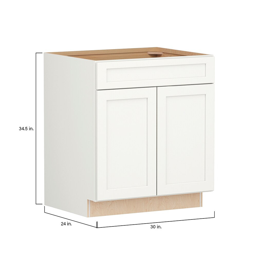 Enhance your kitchen or bath with the Shenandoah Pro Express Breckenridge sink base cabinet. Its full overlay Shaker doors offer a sleek, modern look while the all-plywood construction ensures durability and strength. This fully assembled cabinet features soft-close technology for seamless operation.