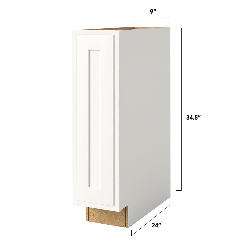 The Breckenridge 9-inch Linen Base Cabinet offers streamlined elegance in a compact, fully assembled plywood construction. Its painted, recessed panel shaker doors provide a modern yet timeless look that complements various home styles, while the soft-close technology ensures functionality with finesse.