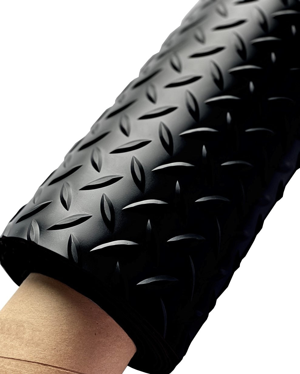 This diamond-plate roll turns a utility space into a polished, performance-driven room. The deep Midnight Black finish delivers a sleek, industrial edge while the raised tread pattern catches the light with subtle dimension. Float a single roll as a bold parking pad or run multiple for wall-to-wall continuity alongside stainless storage and crisp white walls. It’s an effortless layer of luxury and protection under every drive-in moment.