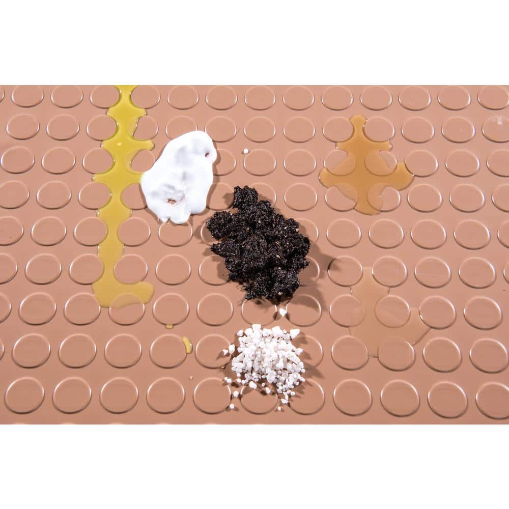 Commercial-grade 100% polyvinyl roll with raised coin texture protects and upgrades garage floors. Waterproof, salt- and spill-resistant, it hides cracks and installs as a loose lay or with adhesive over most subfloors.
