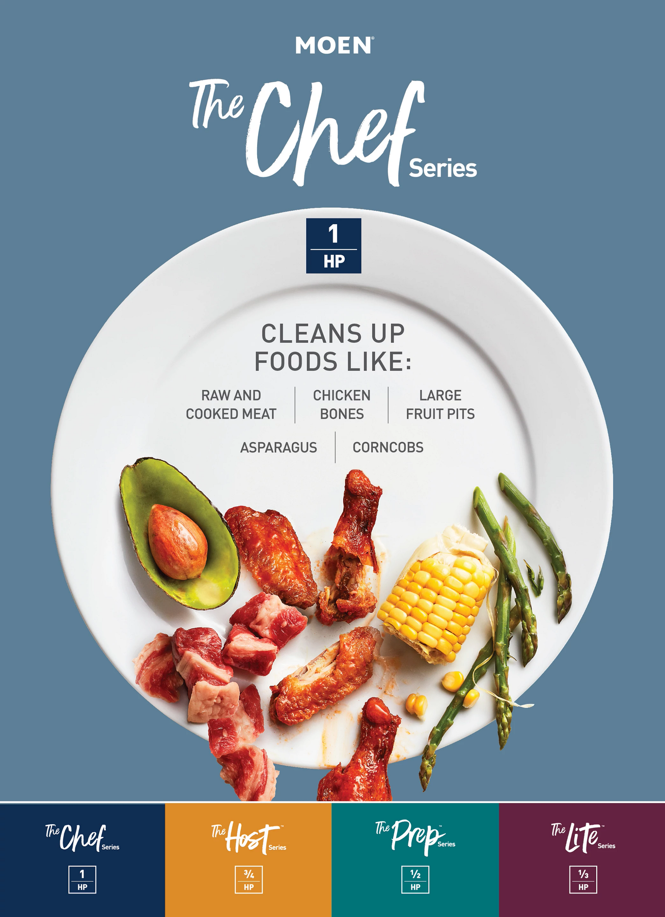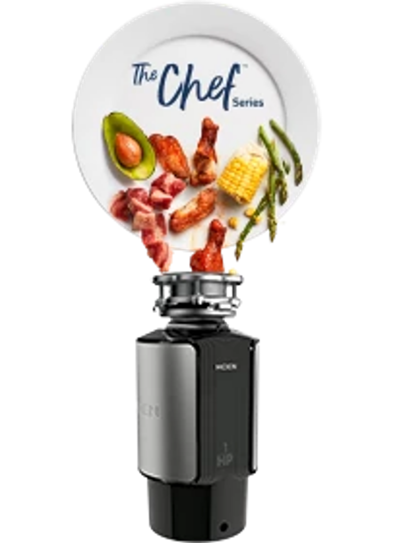 Upgrade to the Moen Chef Series GX100C for powerful, quiet cleanup and a fast, universal install.