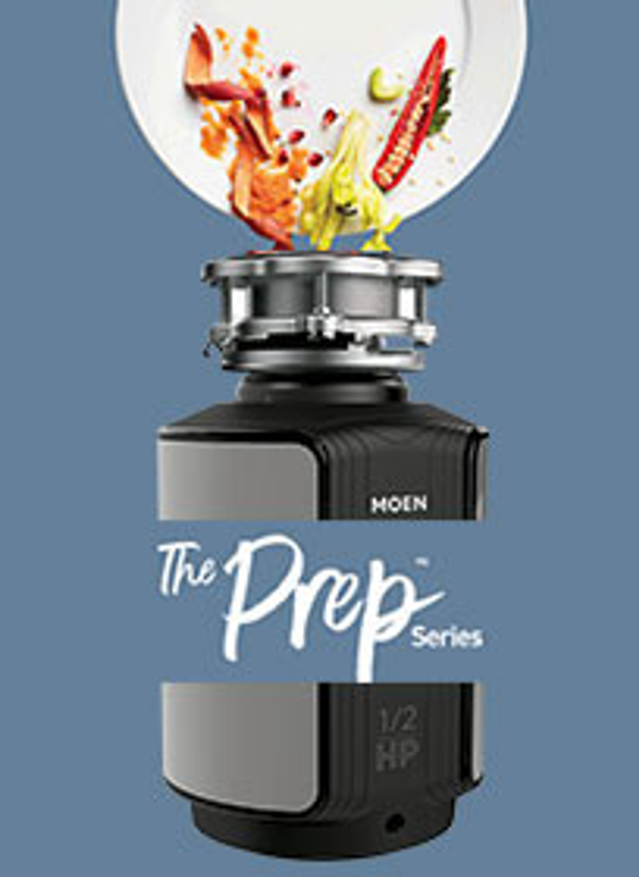 Compact and powerful, the Moen GX50C The Prep Series garbage disposal uses a 1/2-HP VORTEX permanent magnet motor to quickly grind everyday scraps. SoundSHIELD insulation helps keep operation quiet, while the Universal Xpress Mount fits most existing 3-bolt assemblies for easy installation.