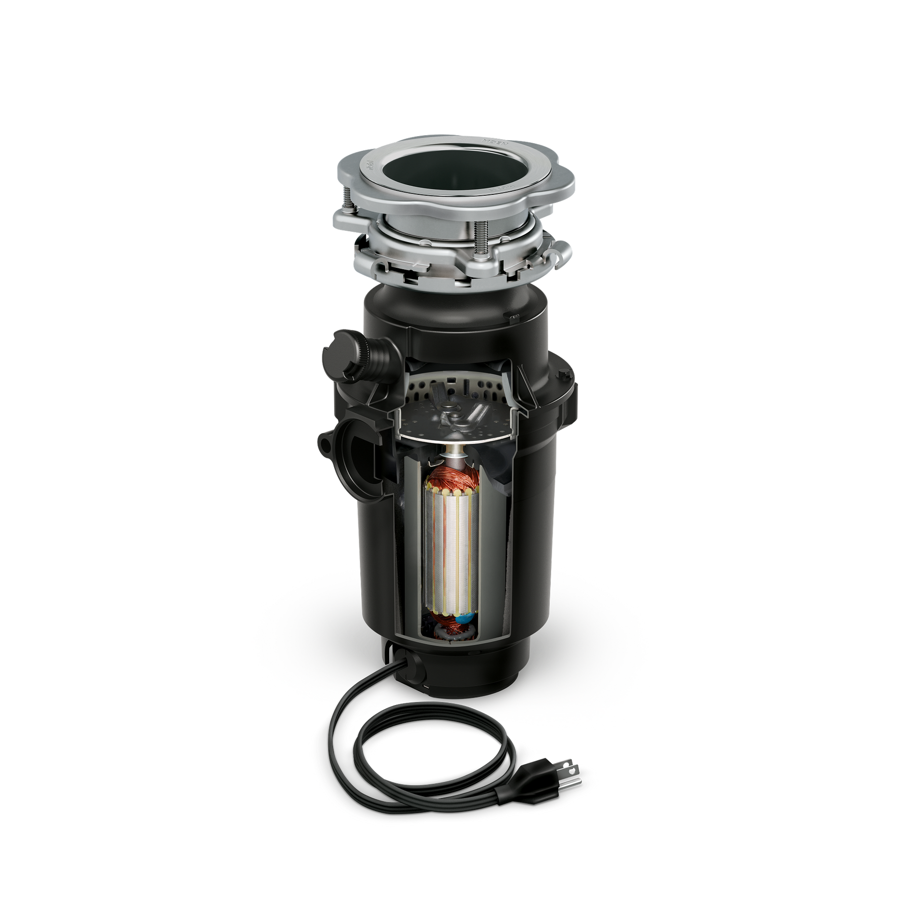 A compact, 1/2 HP garbage disposal built for everyday kitchen cleanup. Features Moen’s high-speed VORTEX permanent magnet motor, sound-reducing design, and universal 3-bolt mount for easy installation.
