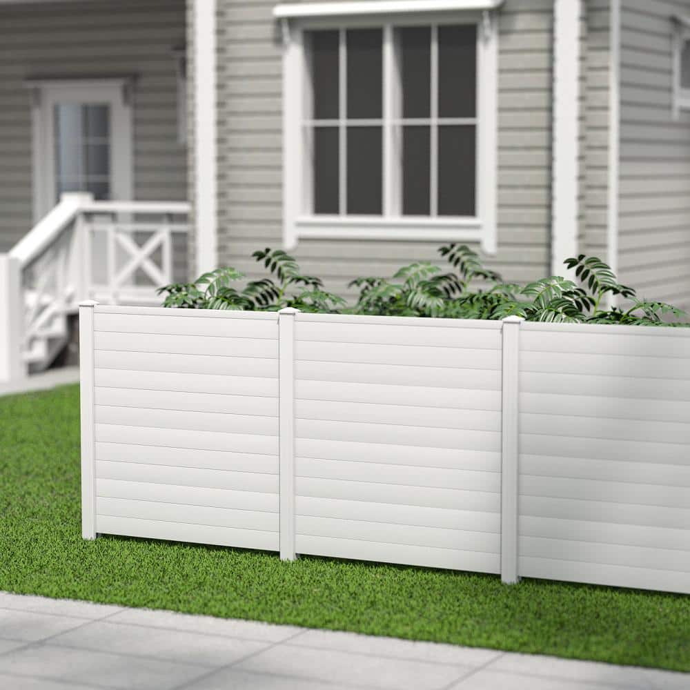 Imagine your garden adorned with the sleek lines of PVC in crisp white, subtly defining spaces while maintaining the air of mystery. The versatile configurations allow for creative expressions—be it linear backdrops or protective L-shapes. Style it against lush greenery or use it to frame an outdoor seating area. This panel marries form and function, embodying a refined aesthetic that's quintessential to sophisticated outdoor living.