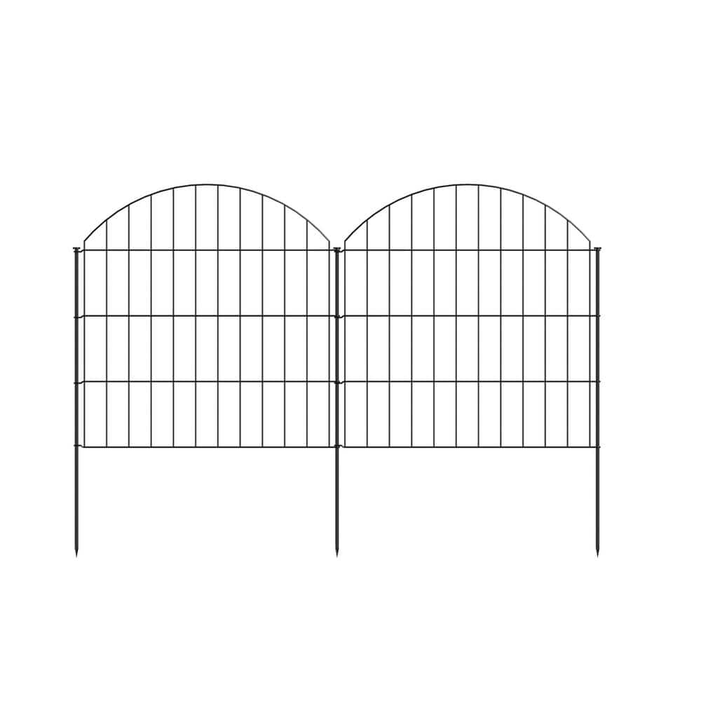 Angel Sar 28 in. x 11.7 ft. Black Metal Garden Fence, 5 Panels + 6 Stakes Rustproof Border Fence Animal Barrier