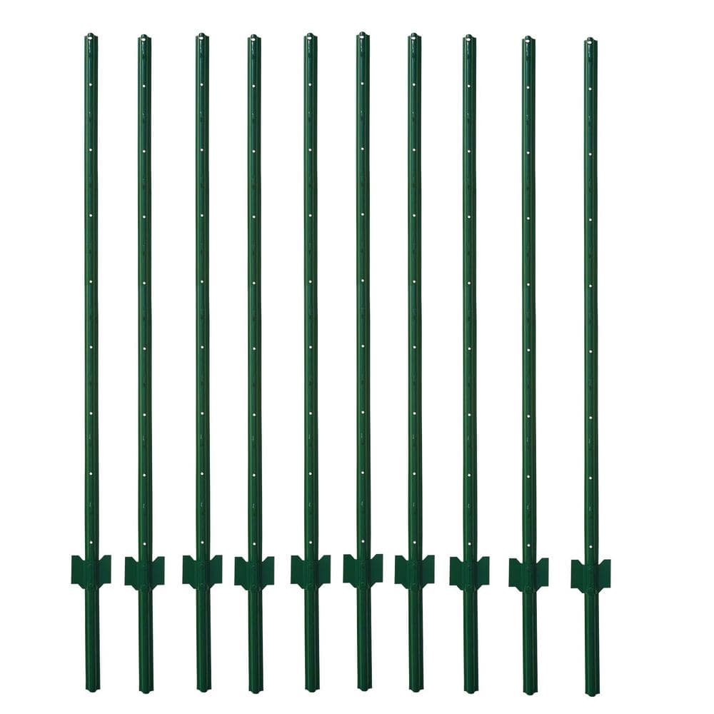 Angel Sar 60 in. x 1.2 in. x 1.2 in. Metal Fence Post U Post Green for Garden Wire Fence Steel Garden Post Sign Post (10-Pack)