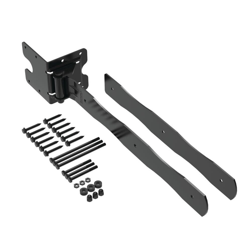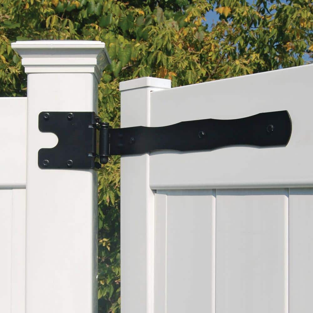 The Barrette Outdoor Living 22.375 in. x 4.25 in. Black Drive Gate Strap Hinge combines strength with style, providing rust-resistant performance thanks to its zinc powder-coated steel construction. Designed for wood and vinyl gates, this heavy-duty hinge supports up to 75 lbs and a 180° swing, making it an essential addition for durable and smooth gate operation.