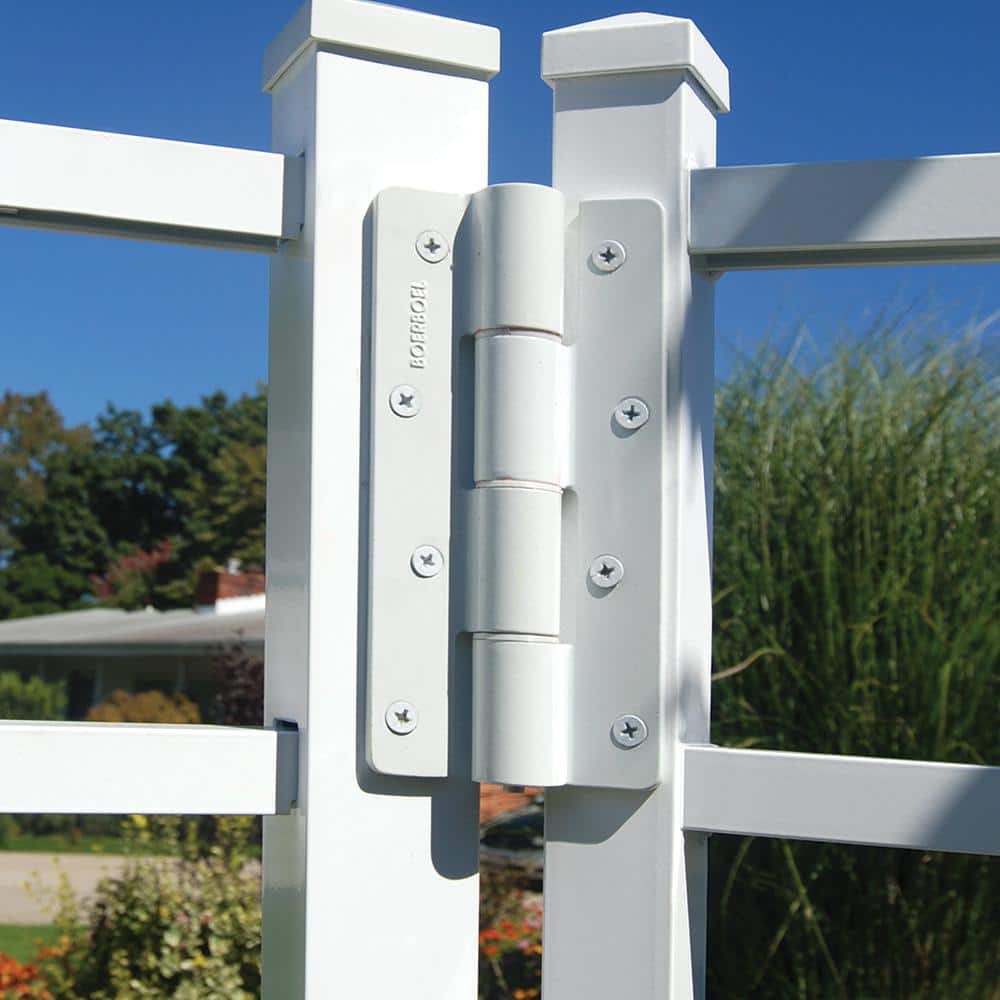 Enhance the security and functionality of your gates with Barrette Outdoor Living's Heavy-Duty Butterfly Hinges. Crafted from durable aluminum with a sleek white finish, these hinges are designed to withstand extreme weather and fit various gate materials, including wood, vinyl, and steel. Featuring self-closing technology and tension control, these hinges ensure your gates close smoothly every time.