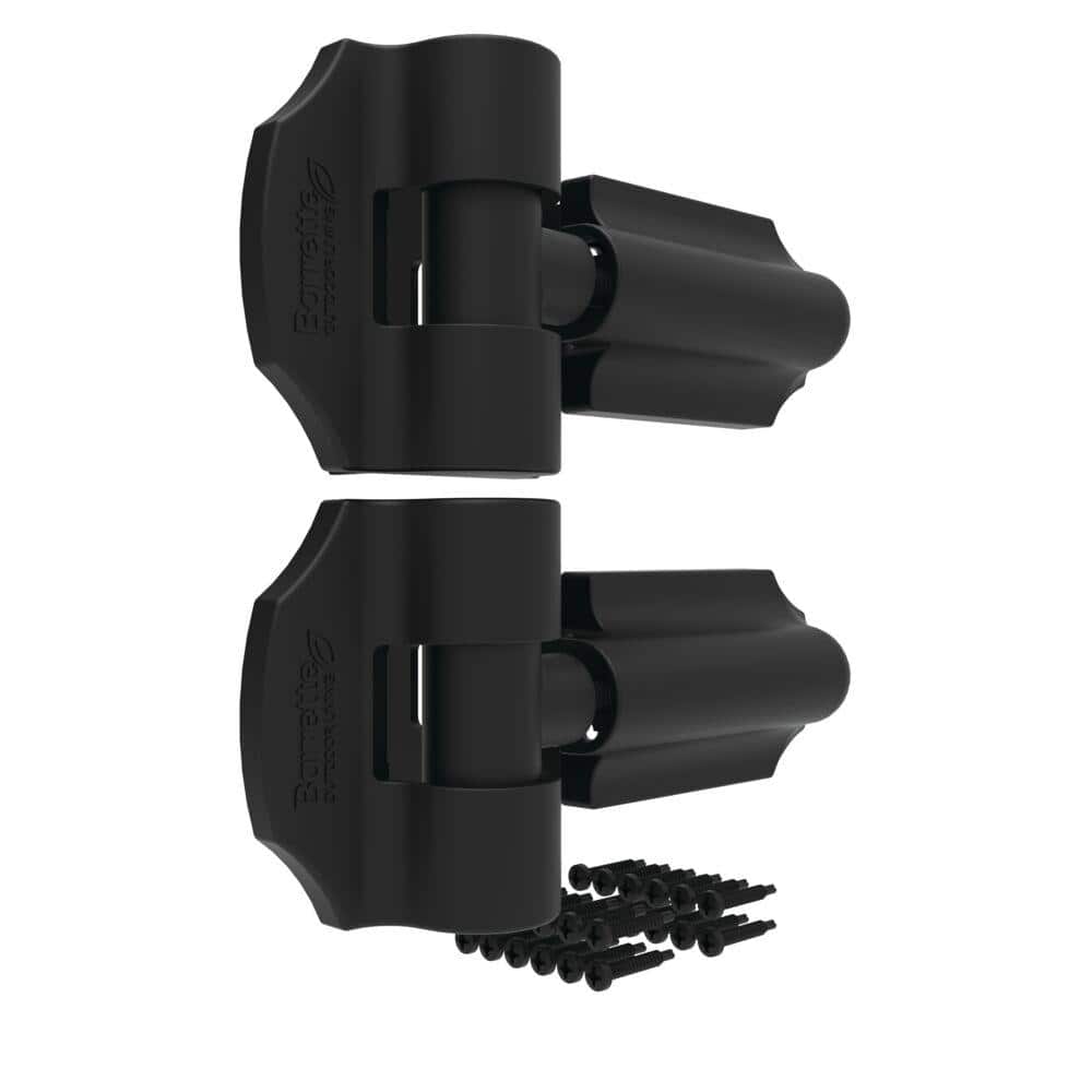 Elevate your fencing projects with the Barrette Outdoor Living Heavy Duty Black Contemporary Gate Hinge set. Designed to manage gates up to 96 inches wide and weighing 150 lbs, these hinges are crafted from zinc powder coated steel for superior durability and style. With easy 3-way adjustability and self-closing capabilities, they are perfect for both vinyl and wood gates.